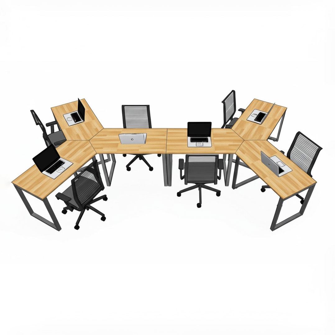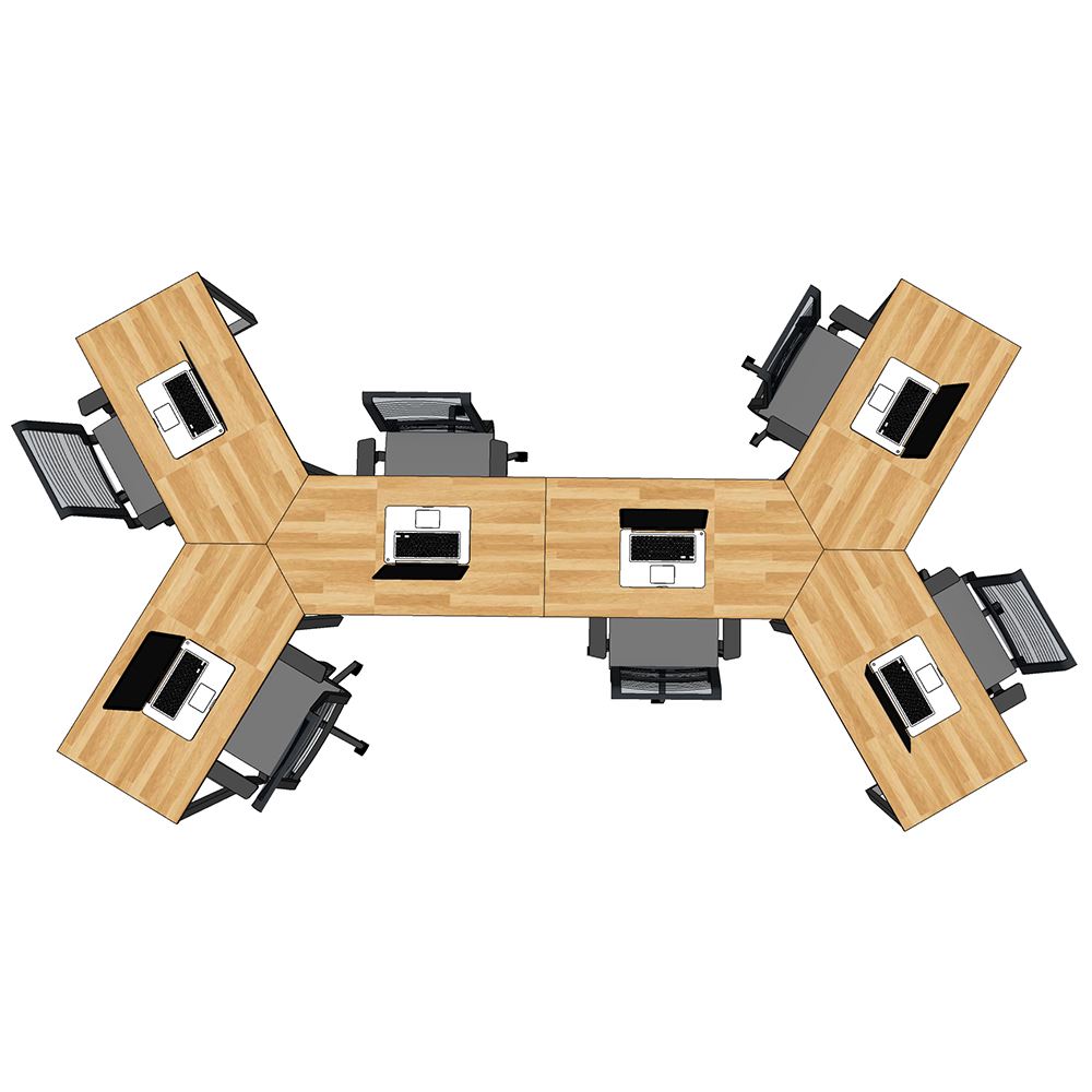 Bàn cụm 6 nhánh cây gỗ cao su chân sắt lắp ráp HBLG041 được ghép từ 6 bàn đơn kích thước mỗi bàn 120x60cm, mặt bàn gỗ cao su được xử lý và hoàn thiện chống thấm nước kết hợp chân bàn sắt hộp dày 1.2mm chắc chắn có khả năng chịu lực tốt, khung chân được phủ lớp sơn tĩnh điện chống rỉ sét, yên tâm sử dụng trong thời gian dài. Đặc biệt hệ khung chân cơ cấu lắp ráp ngàm thông minh dễ dàng tháo lắp, di dời khi cần.