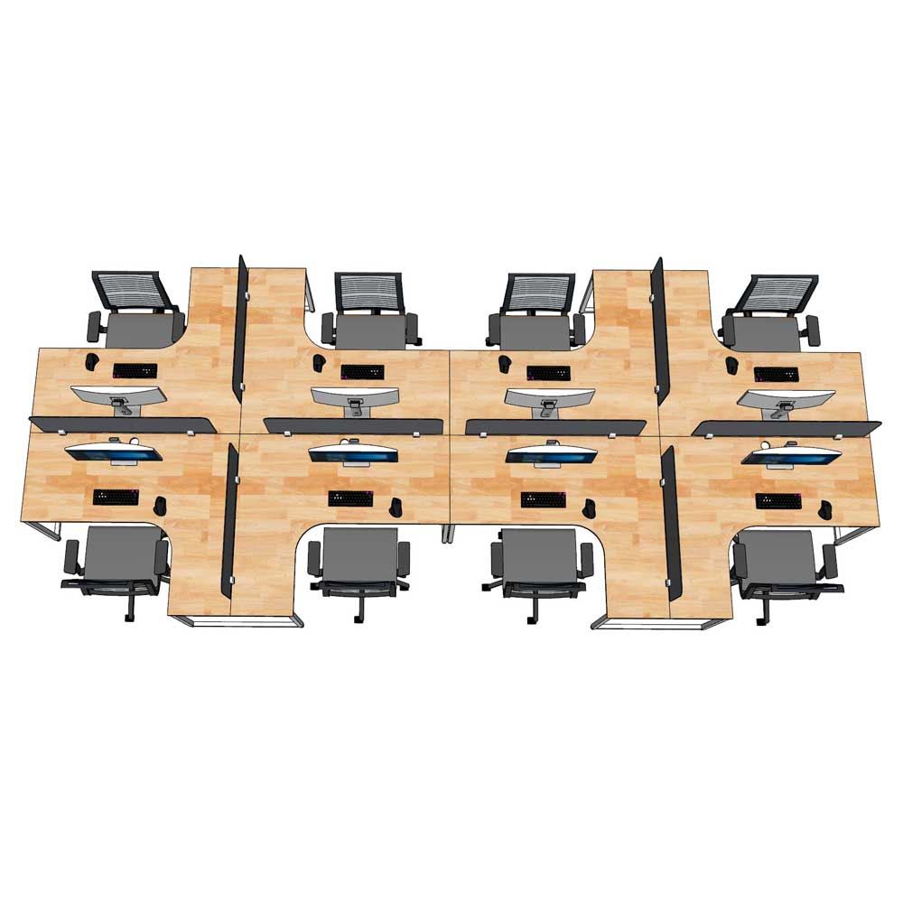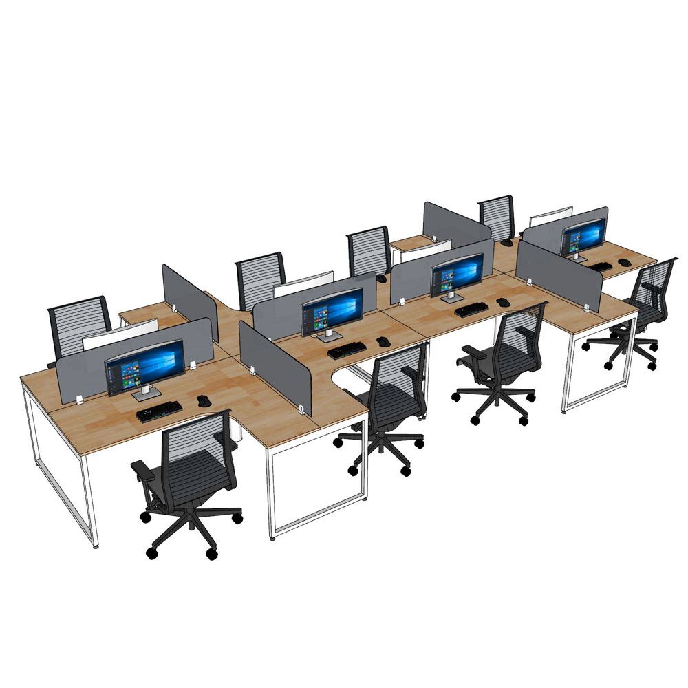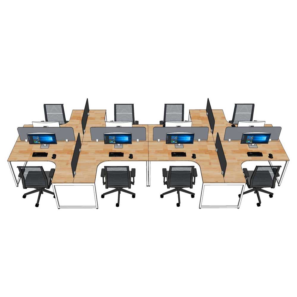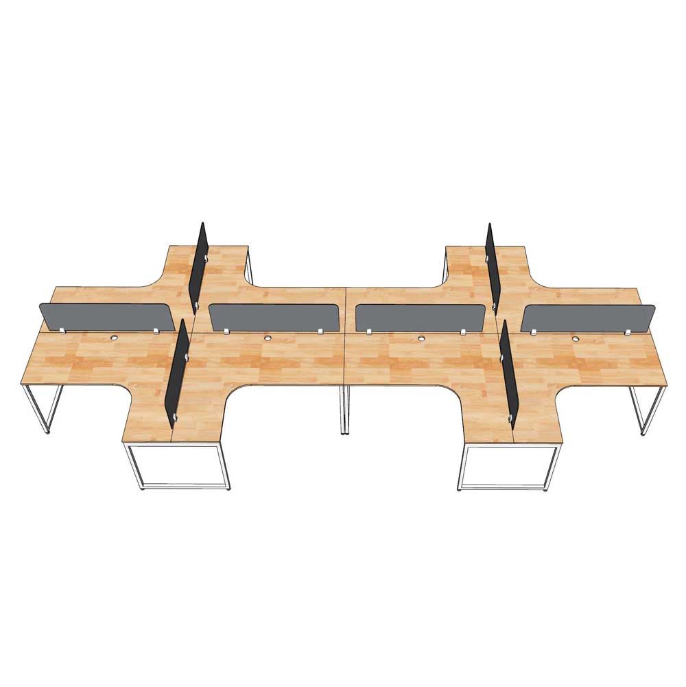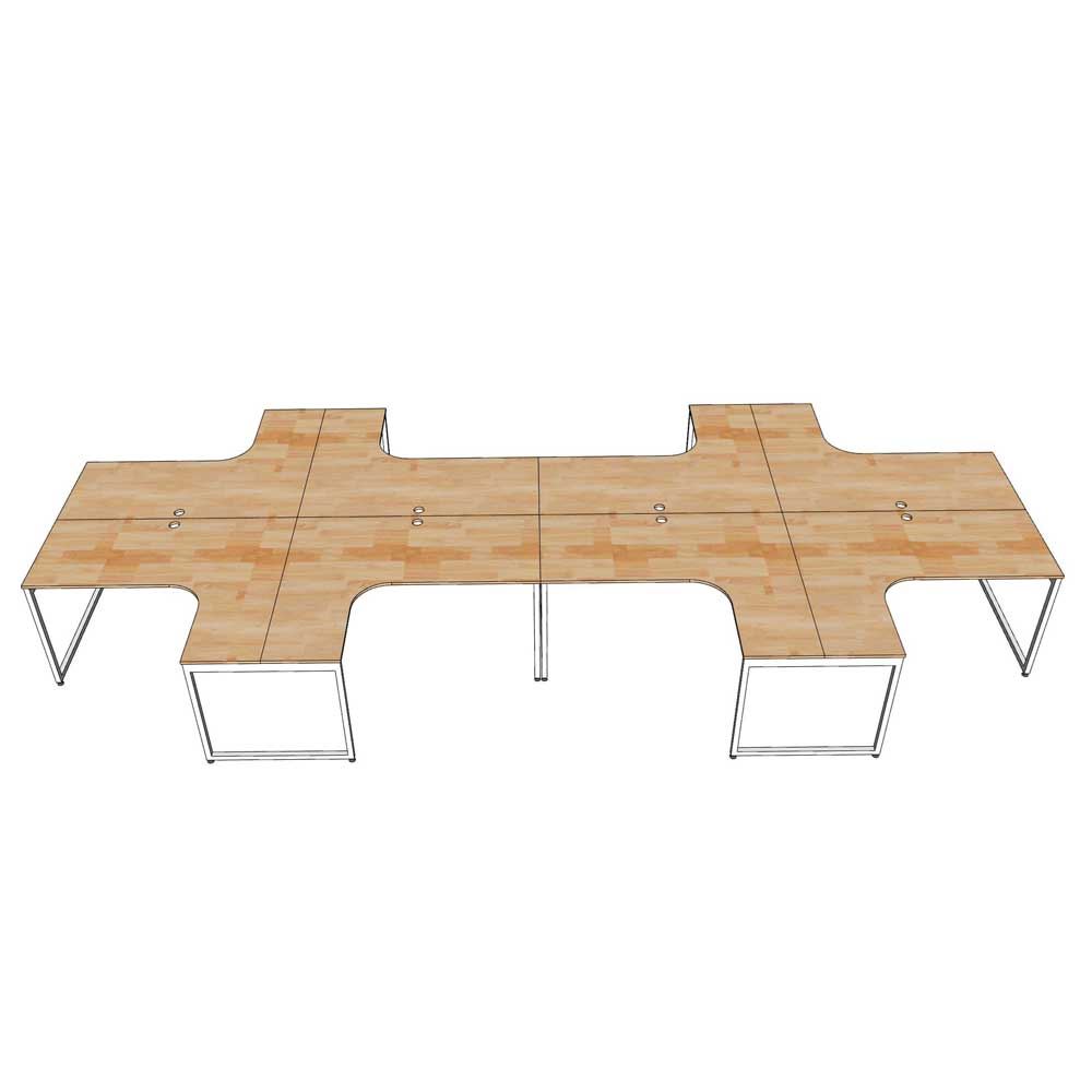 Bàn cụm 8 người HBSL034 là phiên bản mở rộng của mẫu bàn cụm chữ thập, giúp tăng thêm không gian làm việc. Bàn cụm 8 HBLS033 có kiểu dáng thiết kế đơn giản, tiện dụng và khoa học, phù hợp với các không gian văn phòng có diện tích lớn. Với phần mặt bàn được vát cong cách điệu giúp tối ưu hóa không gian sử dụng, đồng thời tăng tính thẩm mỹ cho không gian nội thất văn phòng. Với hệ chân bàn Slean được sử dụng hệ sắt nhỏ hơn, đồng nghĩa với việc giúp tiết kiệm chi phí đầu tư cho văn phòng. Hệ chân sắt Slean được tối giản lại nhưng vẫn đảm bảo sự ổn định với cơ cấu liên kết ngàm chắc chắn.