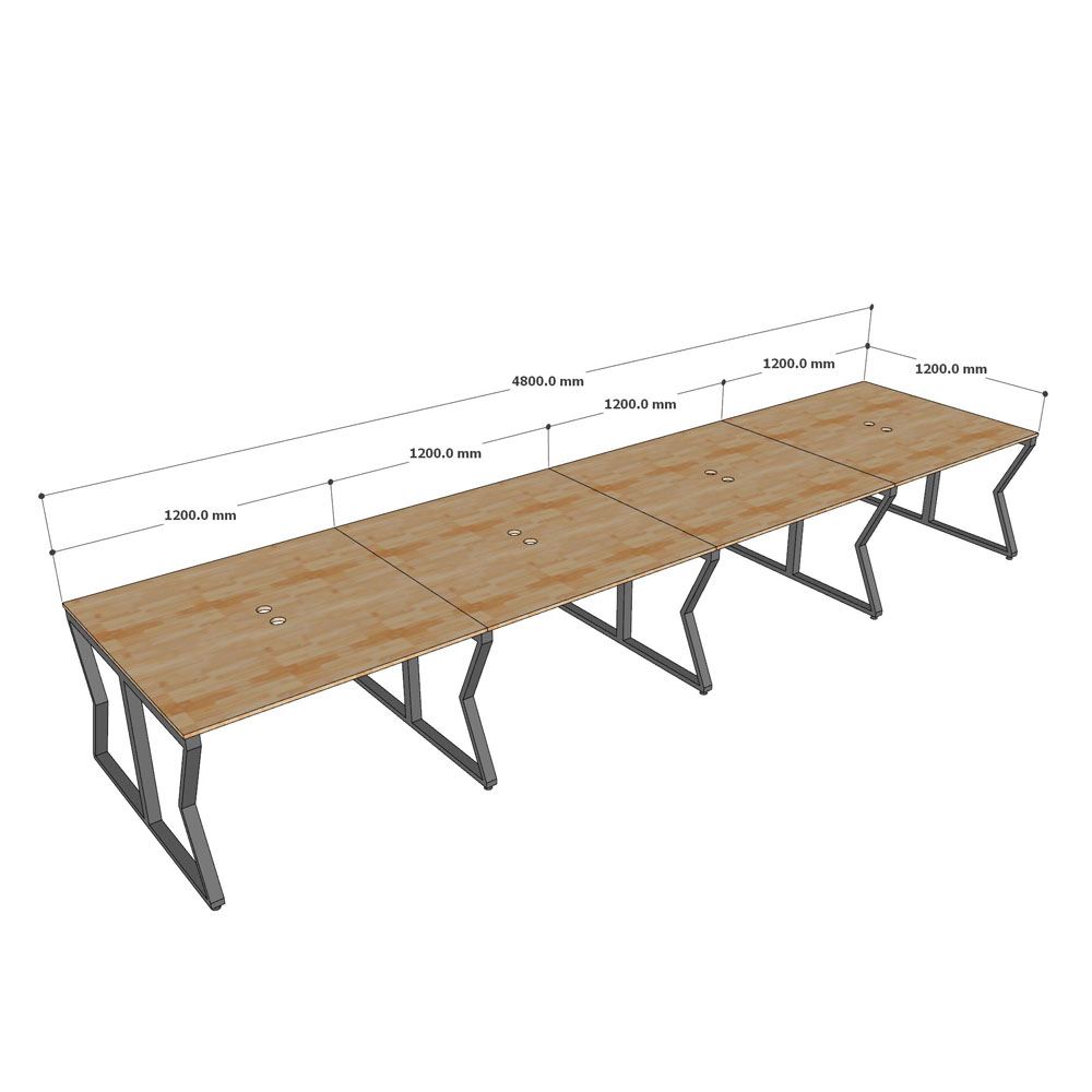 Bàn cụm 8 chỗ ngồi 480x120cm gỗ cao su chân sắt MConcept HBMC036