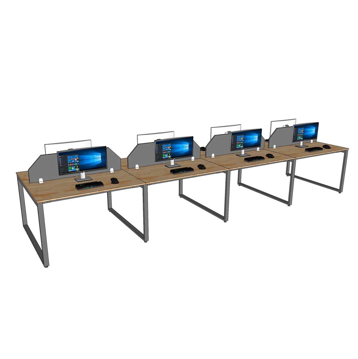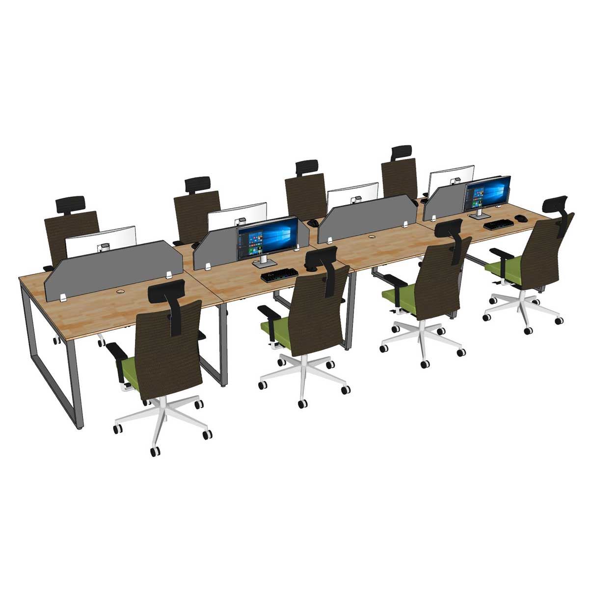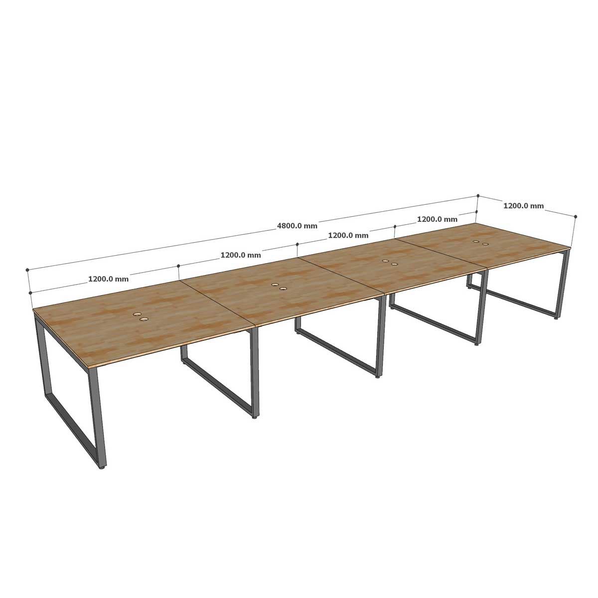 Bàn cụm 8 chỗ ngồi 480x120cm gỗ cao su chân sắt Rectang HBRT088