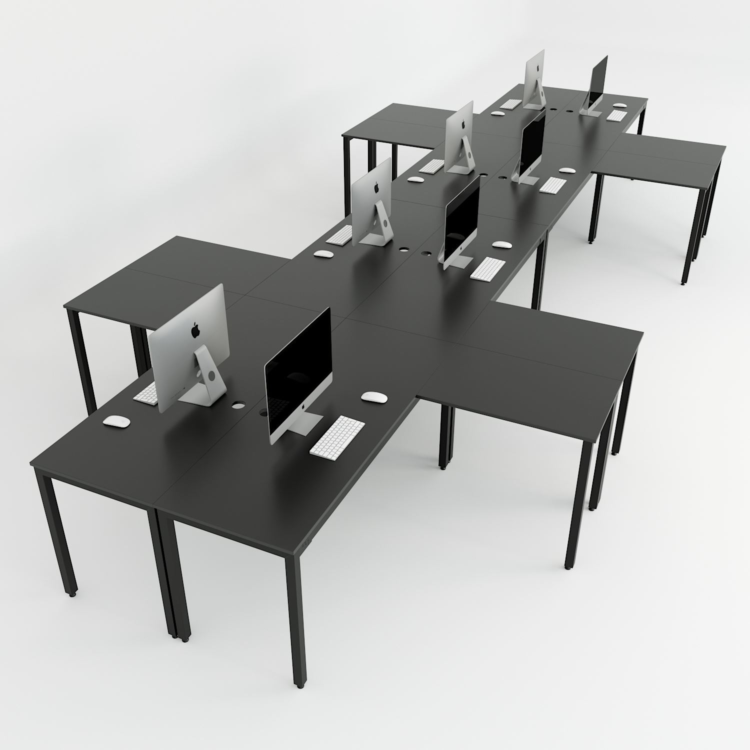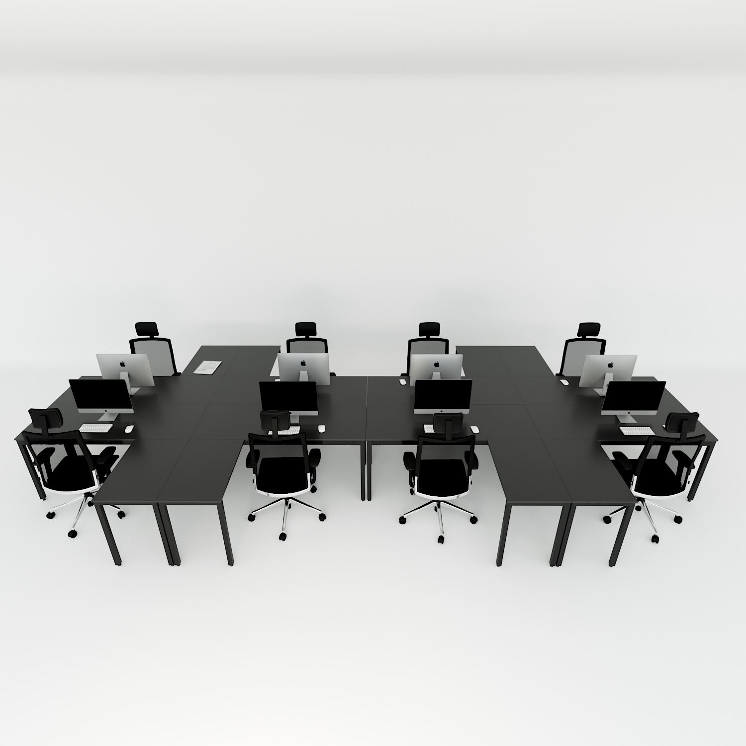 HBUC030 - Bàn cụm 8 góc chữ L nối tiếp hệ Uconcept điểm khác biệt của hệ bàn nằm ở chất liệu mặt bàn là Gỗ Cao Su ghép tiêu chuẩn AA dày 17mm sơn PU hoàn thiện với 5 màu sắc lựa chọn, gỗ cao su siêu bền không sợ nước bản thân là gỗ tự nhiên chắc chắn sẽ làm bạn hài lòng ngay từ cái nhìn đầu tiên. Bàn văn phòng cụm 8 góc chữ L nối tiếp là tập hợp của 8 bàn góc chữ L kích thước 160x140cm với mặt bàn chính 60x160cm và mặt bàn phụ 80x50cm sắp xếp theo kiểu nôi tiếp và người dùng ngồi đối diện với nhau tao nên hệ dài 6.4m thích hợp cho các không gian văn phòng rộng rãi.