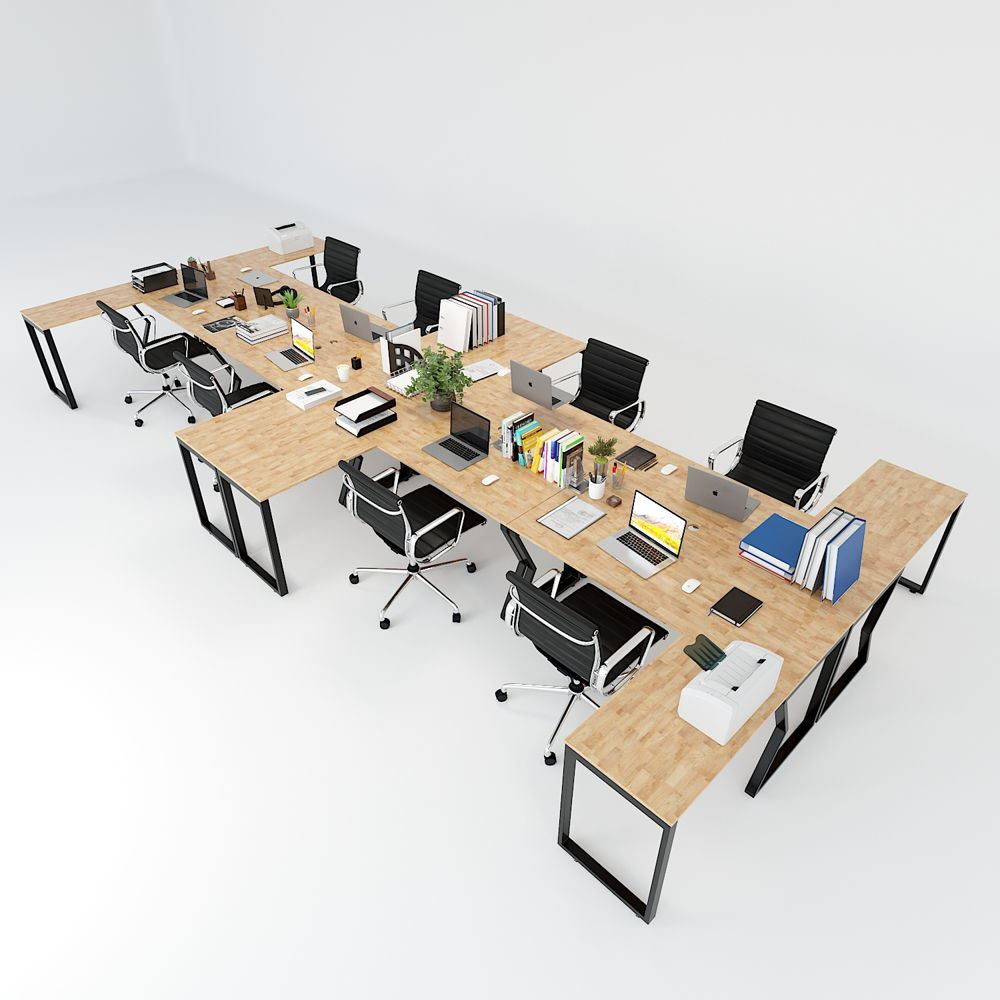 HBMC030 - Bàn cụm 8 góc chữ L nối tiếp hệ Mconcept điểm khác biệt của hệ bàn nằm ở chất liệu mặt bàn là Gỗ Cao Su ghép tiêu chuẩn AA dày 17mm sơn PU hoàn thiện với 5 màu sắc lựa chọn, gỗ cao su siêu bền không sợ nước bản thân là gỗ tự nhiên chắc chắn sẽ làm bạn hài lòng ngay từ cái nhìn đầu tiên, cụm 8 góc chữ L nối tiếp là tập hợp của 8 bàn góc chữ L kích thước 160x140cm với mặt bàn chính 60x160cm và mặt bàn phụ 80x50cm sắp xếp theo kiểu nôi tiếp và người dùng ngồi đối diện với nhau tao nên hệ dài 6.4m thích hợp cho các không gian văn phòng rộng rãi.