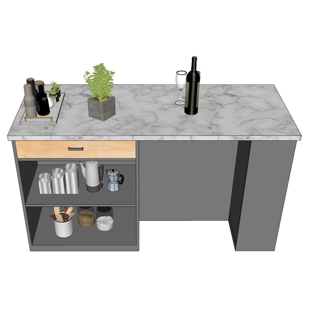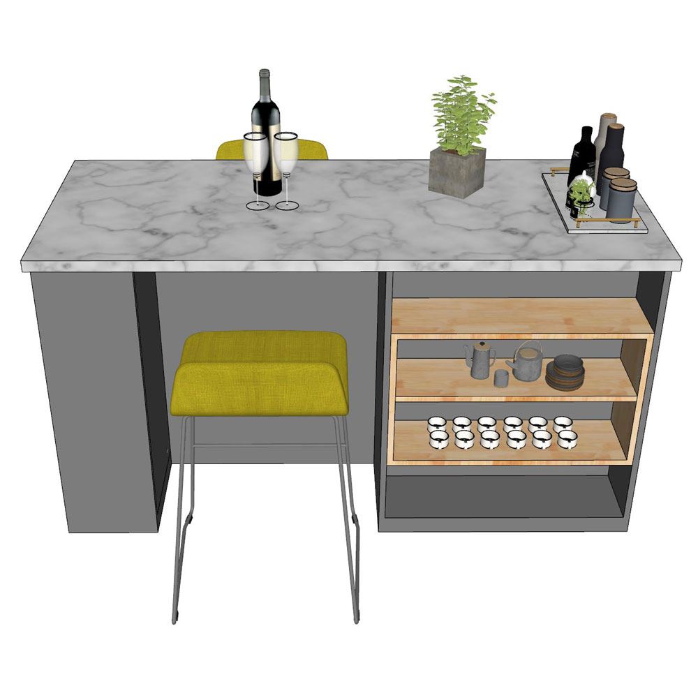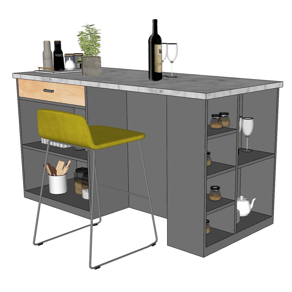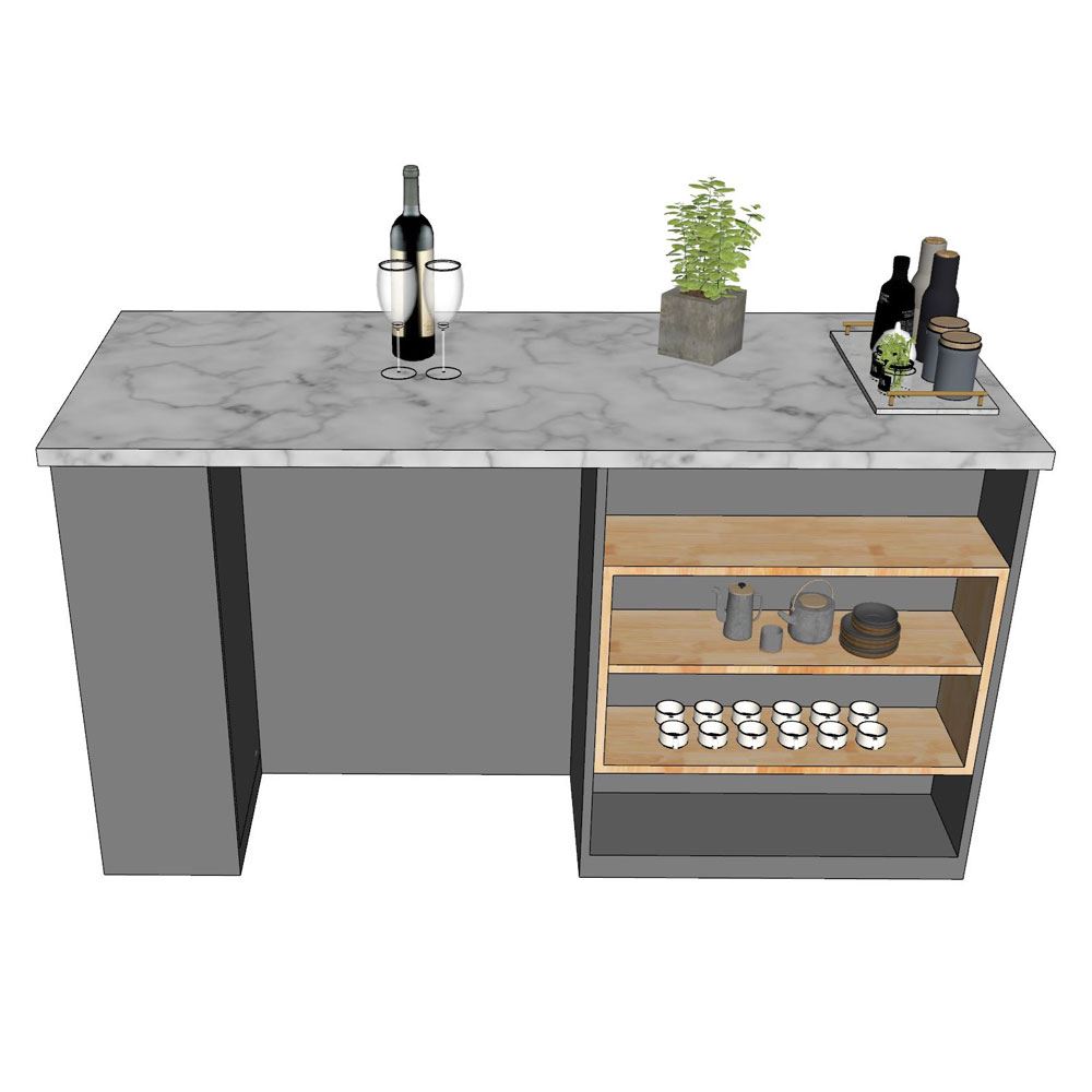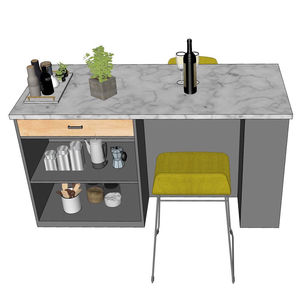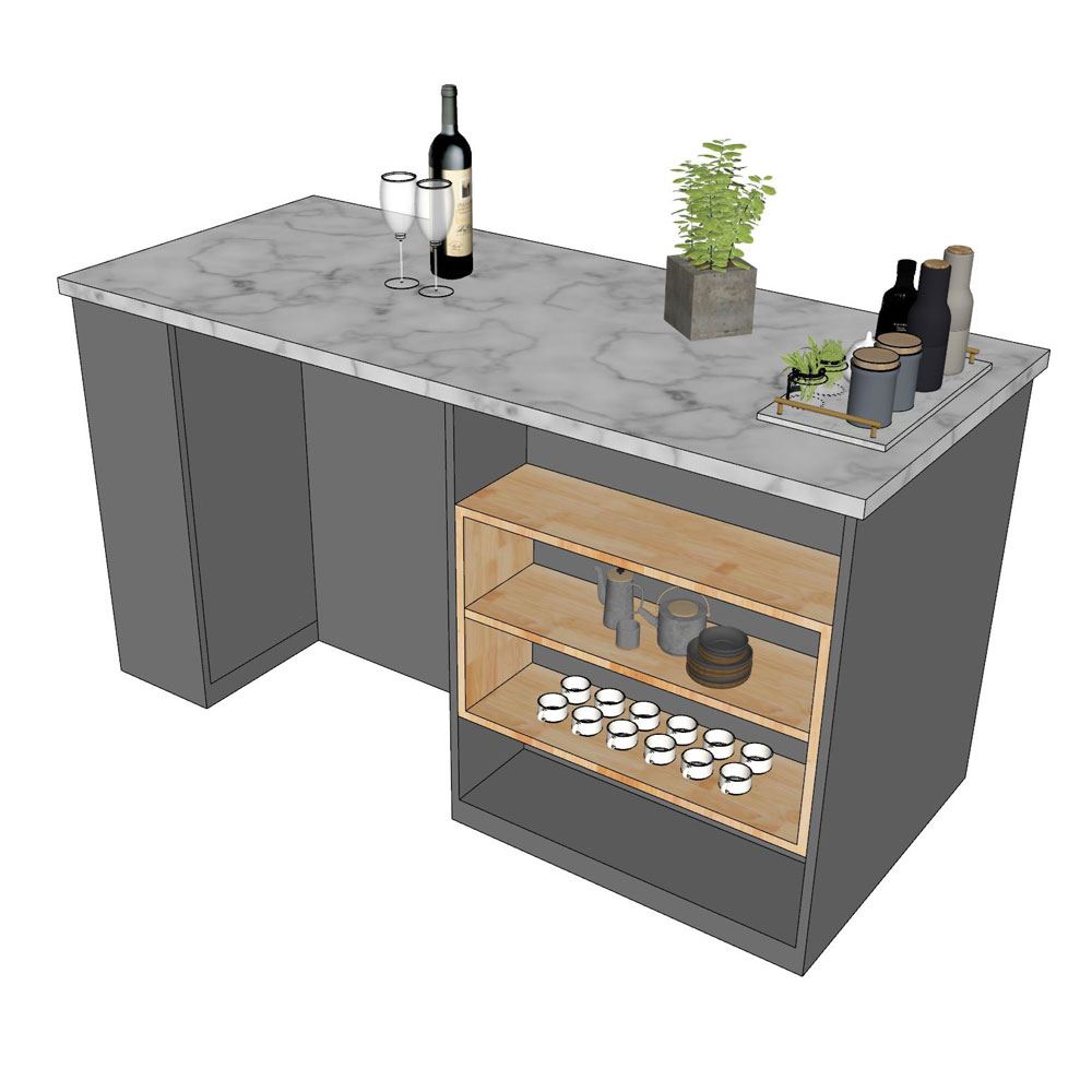 Bàn đảo bếp KISL002 là sản phẩm được phát triển bởi nội thất HOMEOFFICE, với tiêu chí hướng đến sự bền vững và tiện nghi cho gia đình nhiều hơn. Đây là mẫu bàn đảo bếp sử dụng chất liệu gỗ cao su AA, được khai thác từ dòng cây công nghiệp lâu năm, có đường vân đẹp mắt, chất gỗ cứng chắc và bền bỉ. Bề mặt gỗ đã được xử lý xấy khô và chống thấm giúp mang lại độ bền bỉ trong quá trình sử dụng. Bề mặt đá vân mây giúp đam bảo tính thẩm mỹ cao, mang lại không gian hiện đại và sang trọng. Với nhiều ngăn kệ bên dưới giúp bạn dễ dàng để được một số lượng khổng lồ các món đồ dùng trong nhà bếp.