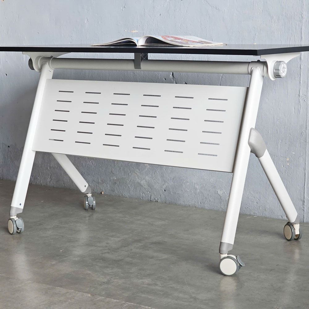 Bạn có thể dễ dàng di chuyển bàn đến bất kỳ vị trí nào trong không gian, hoặc ghép nhiều bàn lại với nhau để tạo thành một bàn lớn hơn, phục vụ cho các buổi hội thảo, đào tạo, hội nghị. Đặc biệt, bánh xe được trang bị thêm khóa, giúp cố định bàn chắc chắn tại vị trí mong muốn, đảm bảo an toàn trong quá trình sử dụng. Yếm che phía trước chân bàn không chỉ tạo nên tính thẩm mỹ, mà còn che khuất các chi tiết kỹ thuật, mang lại vẻ đẹp gọn gàng, chuyên nghiệp cho sản phẩm.