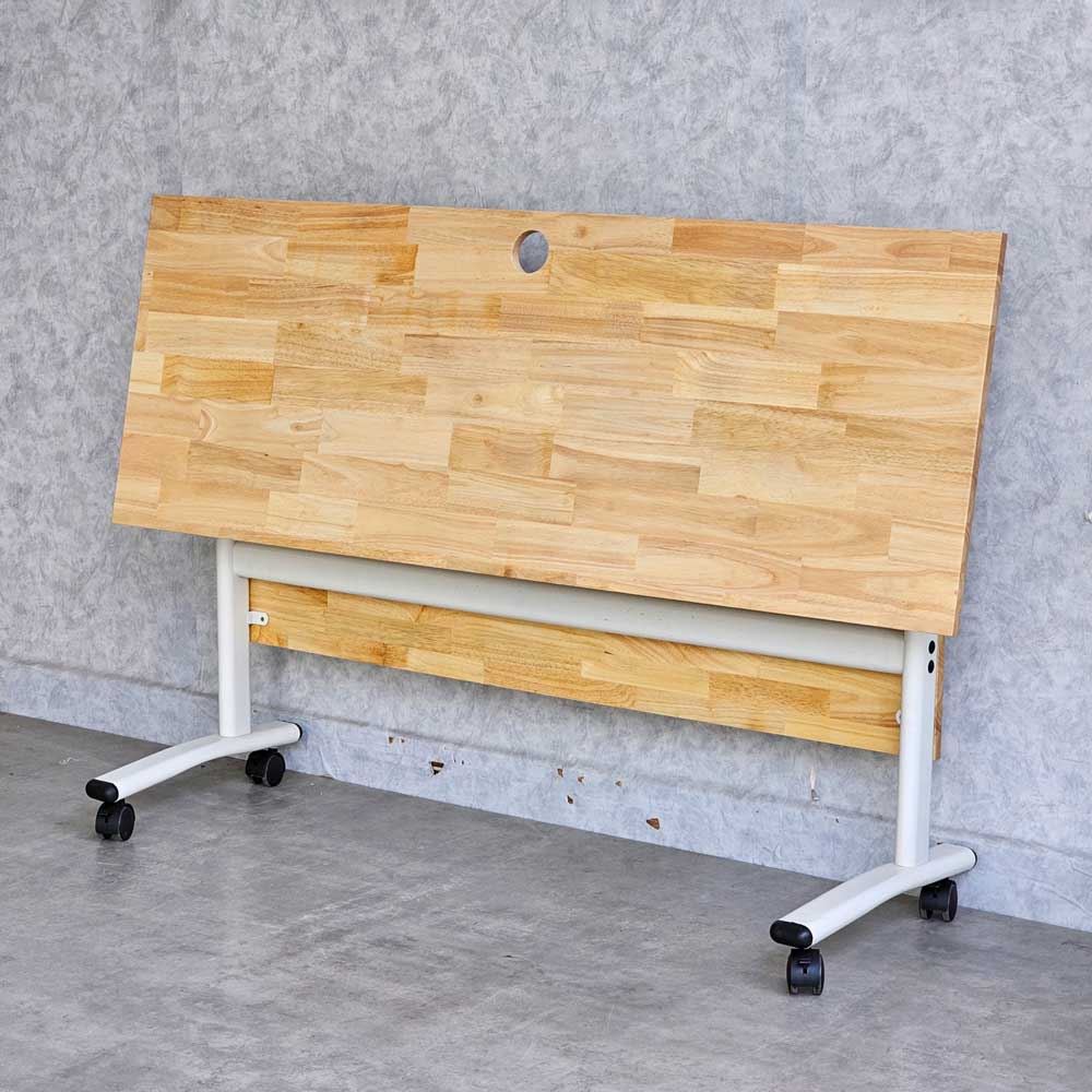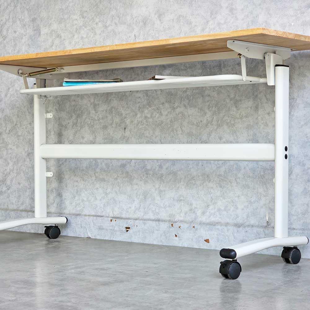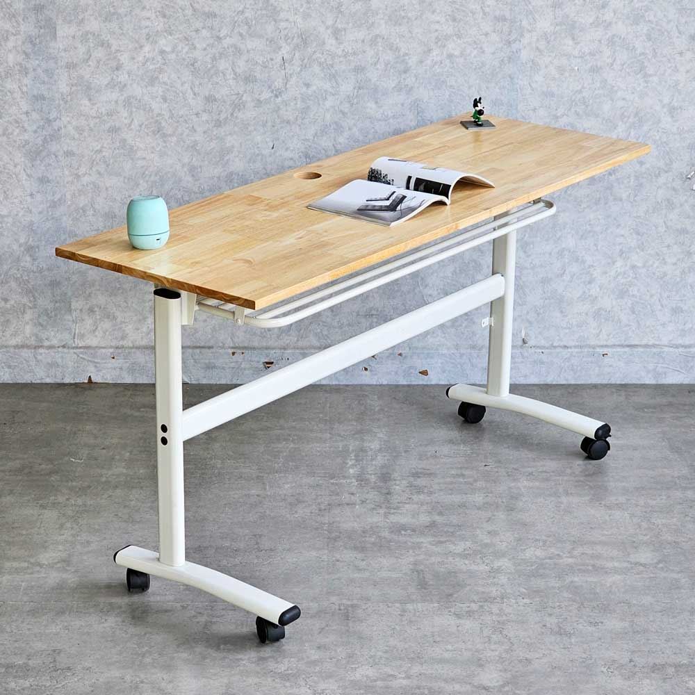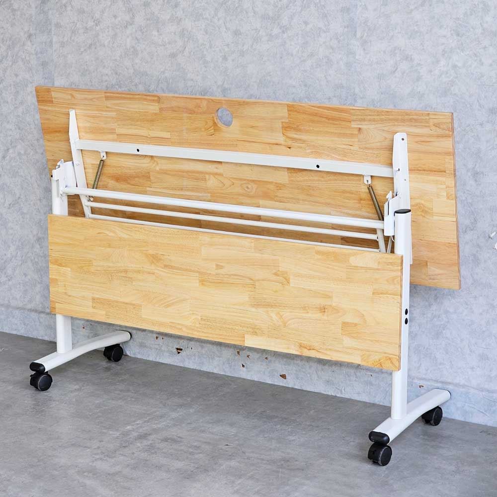 Mặt bàn gấp gọn giúp tiết kiệm diện tích tối đa khi không sử dụng, đồng thời tạo sự gọn gàng cho không gian. Bên cạnh đó, thiết kế có bánh xe di động giúp bạn dễ dàng di chuyển bàn đến mọi vị trí mong muốn, phù hợp cho nhiều mục đích sử dụng như học tập, làm việc, họp nhóm hay giải trí.