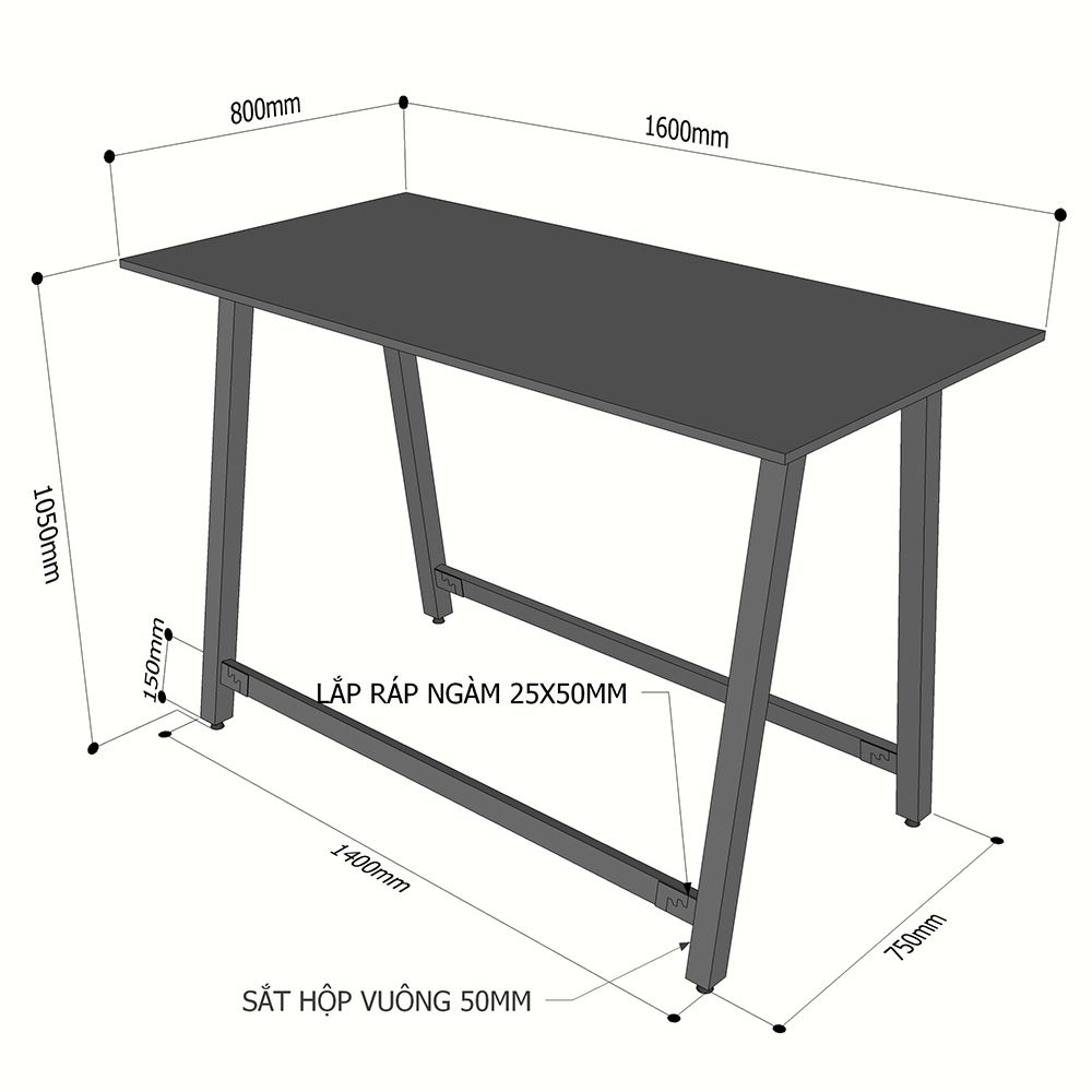 Kích thước bàn đứng 1m6 gỗ Plywood phủ melamin chân sắt vuông