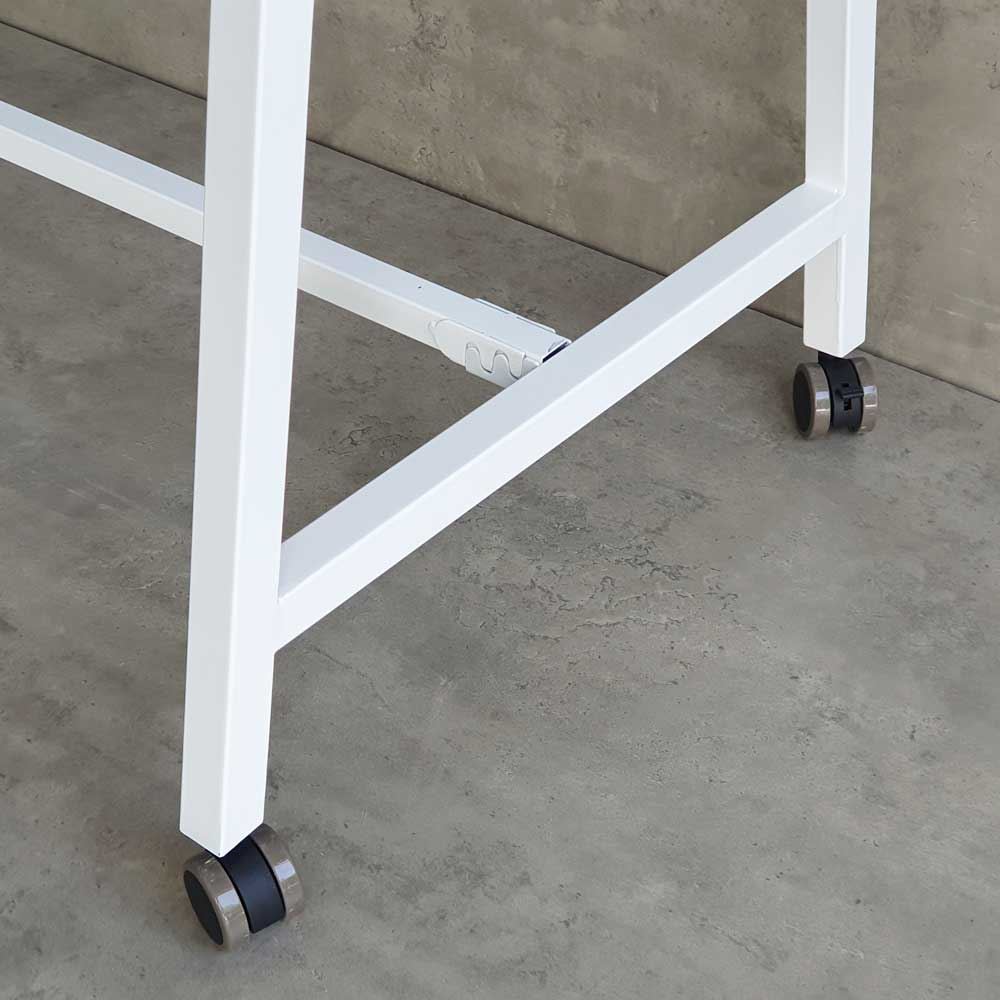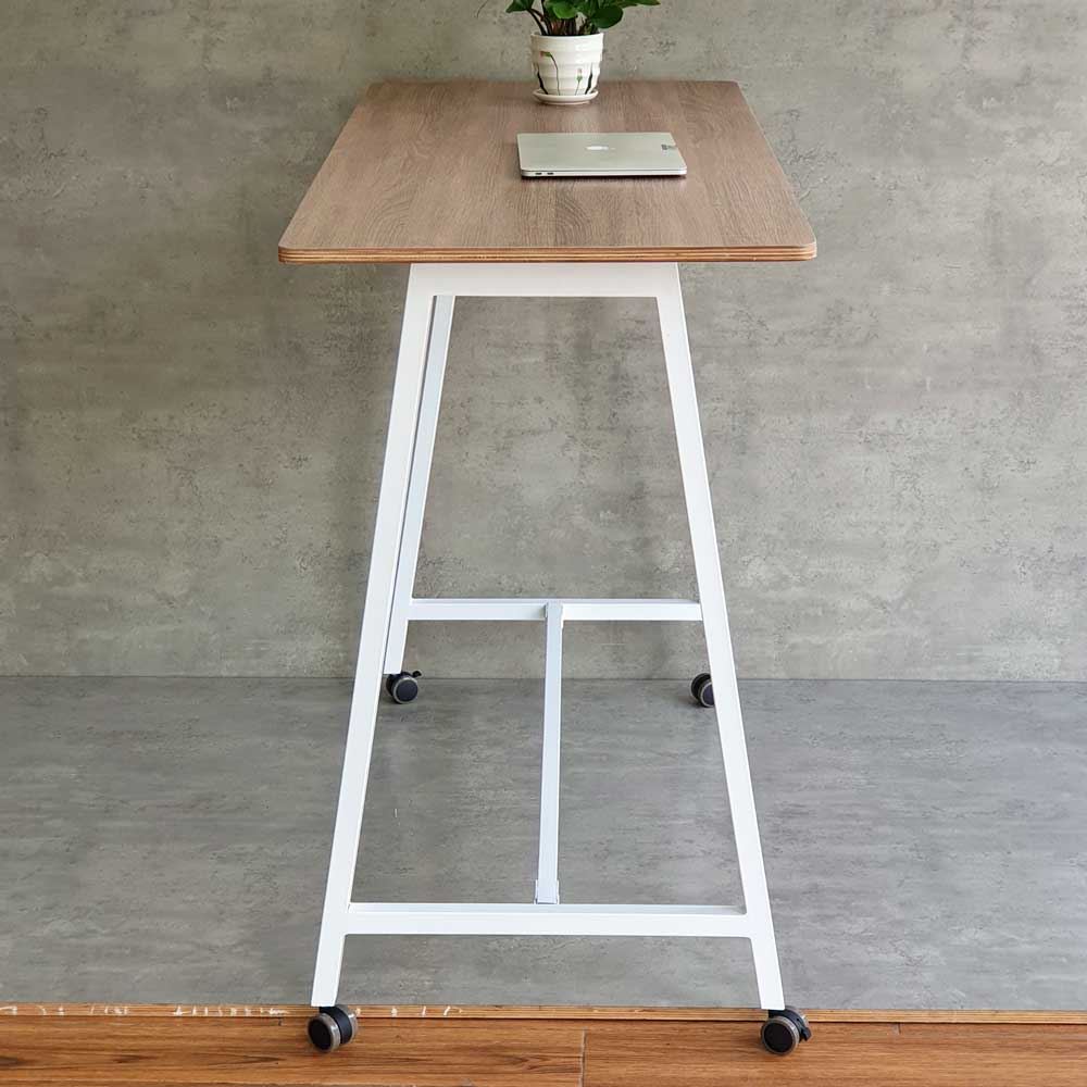 Bàn làm việc đứng HBMN040 này sở hữu thiết kế hiện đại với khung chân sắt chữ A chắc chắn và ổn định, tạo điểm nhấn cho không gian làm việc của bạn. Khung chân có 3 thanh giằng cứng cáp và khỏe khoắn, đảm bảo khả năng chịu tải cao và độ bền bỉ theo thời gian. Bàn được trang bị bánh xe di động (có khóa cố định) giúp bạn dễ dàng di chuyển vị trí làm việc một cách linh hoạt.