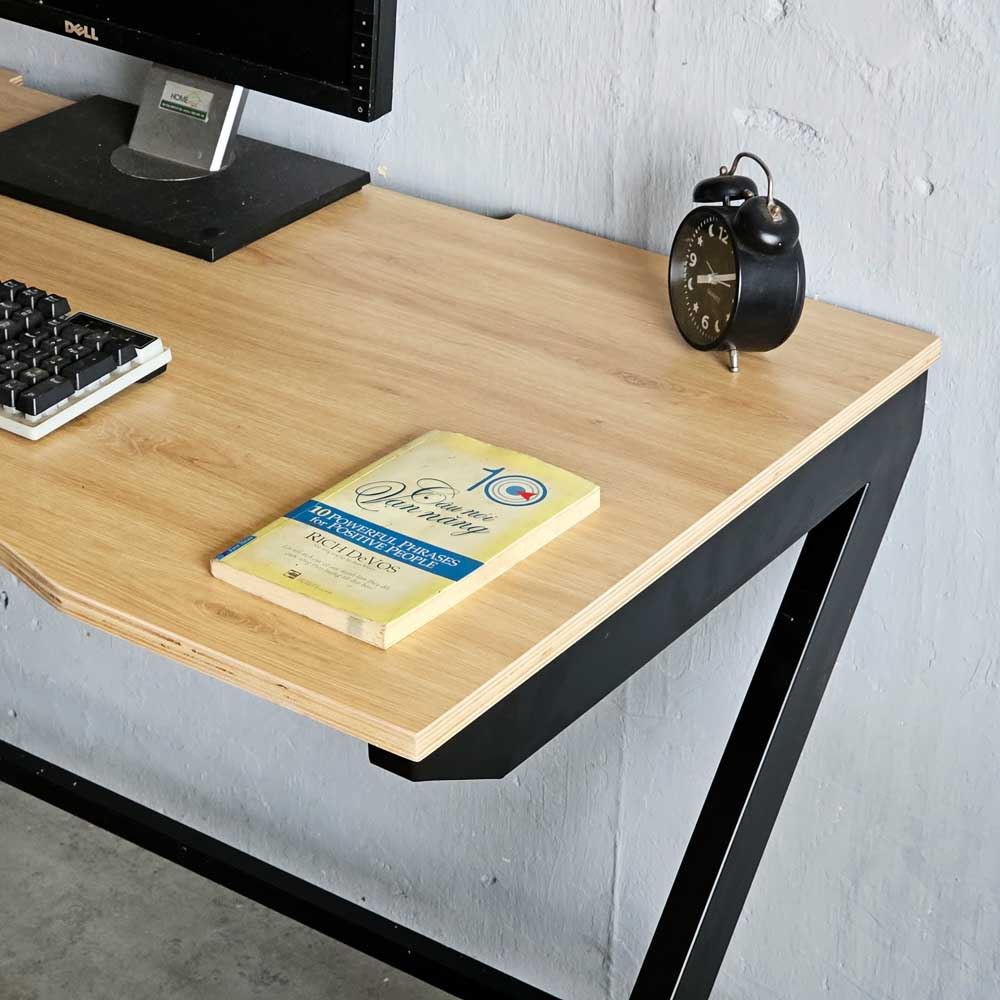 Mặt bàn được làm từ ván gỗ plywood, một loại vật liệu được đánh giá cao bởi độ bền và khả năng chịu nước tốt. Ván gỗ plywood có cấu tạo từ nhiều lớp gỗ mỏng được ép lại với nhau dưới nhiệt độ và áp suất cao, tạo nên sự chắc chắn và khả năng chịu tải trọng vượt trội so với các loại gỗ thông thường. Bề mặt ván gỗ được phủ một lớp melamin giả vân gỗ hoặc vân bê tông đẹp mắt, mang đến sự sang trọng và tinh tế cho không gian làm việc của bạn.