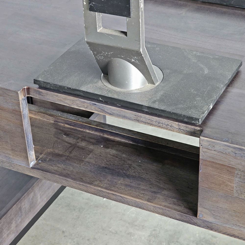 Mặt bàn gaming được làm bằng vật liệu chính được chúng tôi lựa chọn và sử dụng là gỗ cao su AA, loại dày 17mm, đã được xử lý qua xấy công nghệ giúp tăng khả năng chống thấm và chống cong vênh. Bề mặt gỗ đã được xử lý PU giúp tăng tính thẩm mỹ và chống thấm nước. Kết hợp với mặt gỗ bàn là hệ khung chân bàn sử dụng cơ cấu lắp ráp ngàm chắc chắn, bề mặt phủ lớp sơn tĩnh điện hạn chế tối đa ăn mòn hoá học, lớp sơn tĩnh điện nâng cao tuổi thọ sản phẩm. Mỗi sản phẩm được hoàn thiện cẩn thận, tỉ mỉ từ công đoạn thiết kế.
