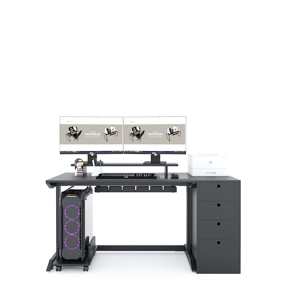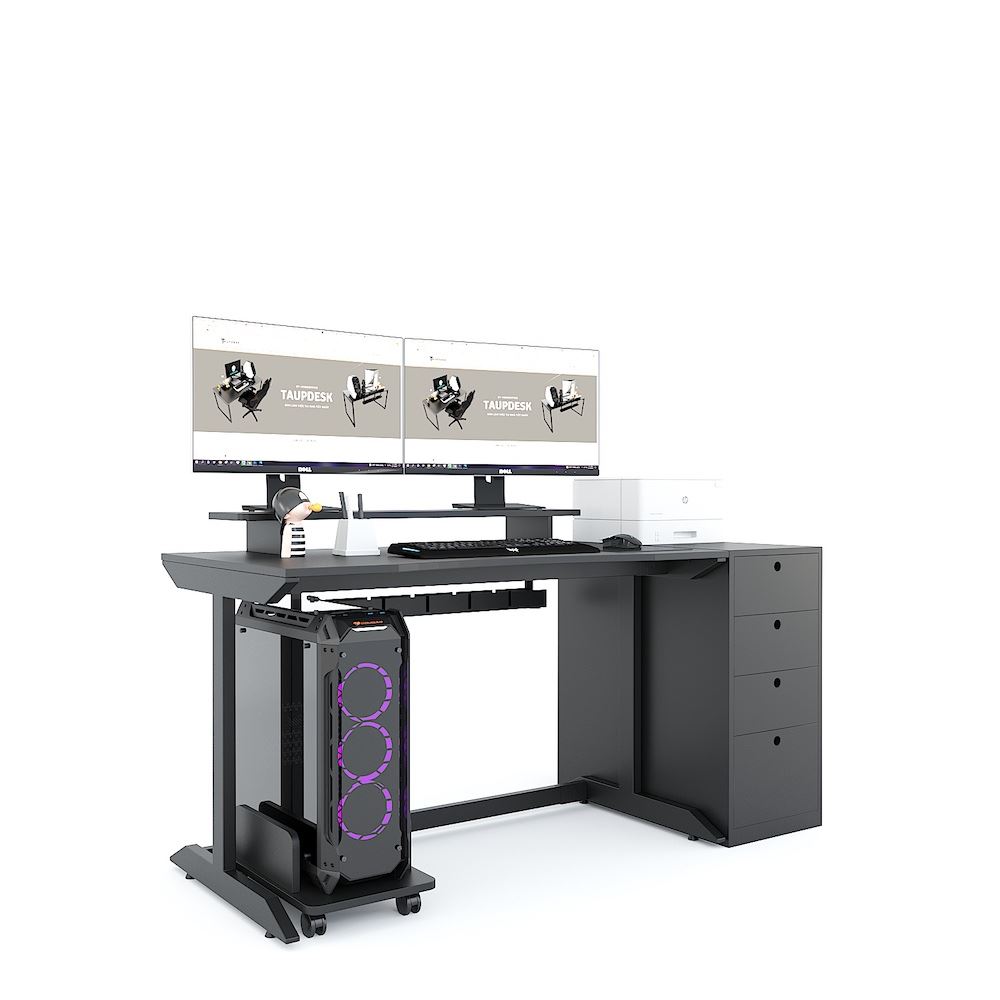 Bàn Gaming full đen gỗ cao su chân sắt chữ I kết hợp một bên tủ