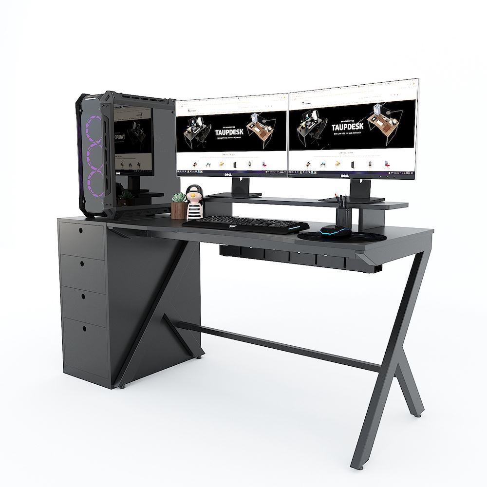 Kích thước mặt bàn là 120x60 cm, giúp nó có thể để vừa trong những không gian nhỏ hẹp. Mặc dù sở hữu kích thước không quá lớn, nhưng nó hoàn toàn có thể giúp bạn đặt vừa một bộ máy tính chơi game chuyên nghiệp cùng những thiết bị theo kèm. Bên cạnh kích thước 120x60cm, bạn có thể lựa chọn những kích thước khác lớn hơn tại HomeOffice như 120x70cm, 140x60cm hay 140x70cm đều có cả.