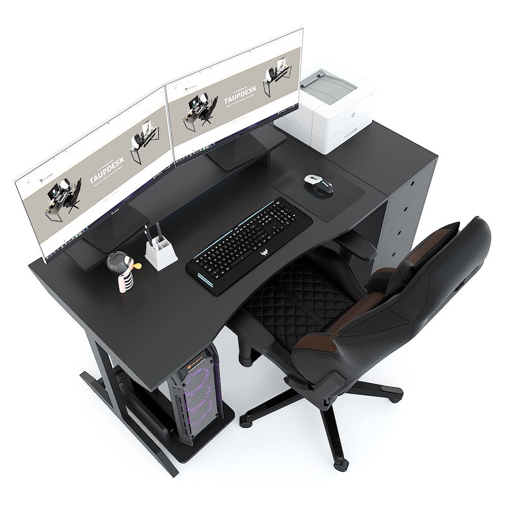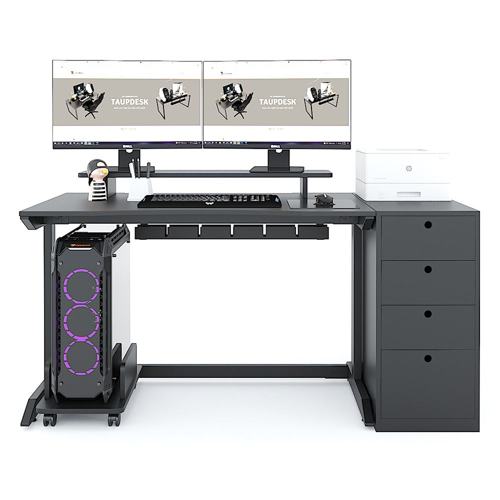 Bàn Gaming TaUP gỗ cao su một bên tủ full đen cá tính