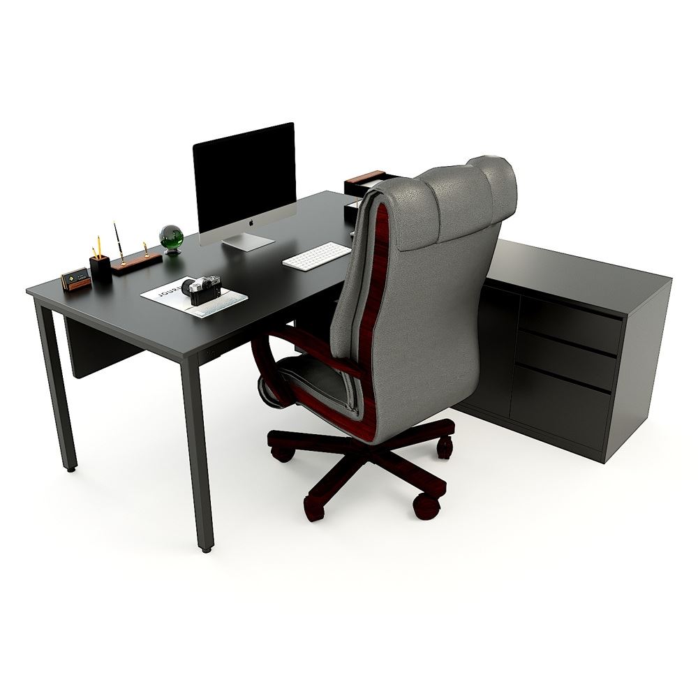 Bàn giám đốc gác tủ gỗ cao su chân bàn sắt hệ Uconcept