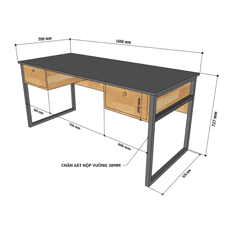 Bàn giám đốc 160x70cm 2 hộc kéo và tấm chắn