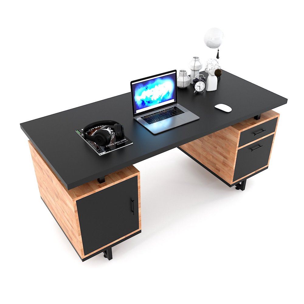 Bàn giám đốc 160x70cm chân bàn kết hợp tủ gỗ cao su