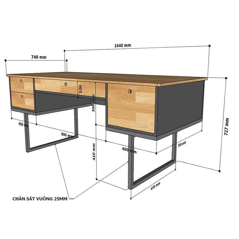 Bàn giám đốc chân kết hợp tủ gỗ cao su chân sắt