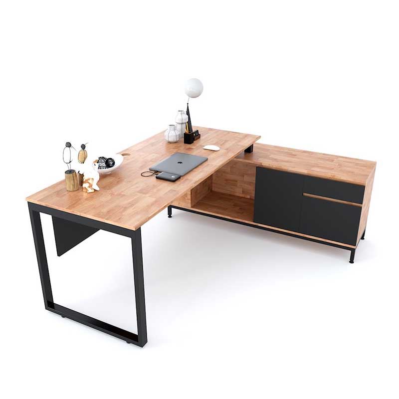 Bàn giám đốc 180x150cm chân kết hợp tủ gỗ cao su