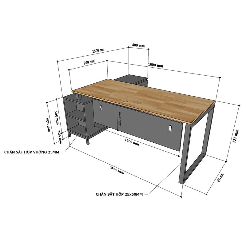 Kích thước bàn giám đốc chân kết hợp tủ BGD68059