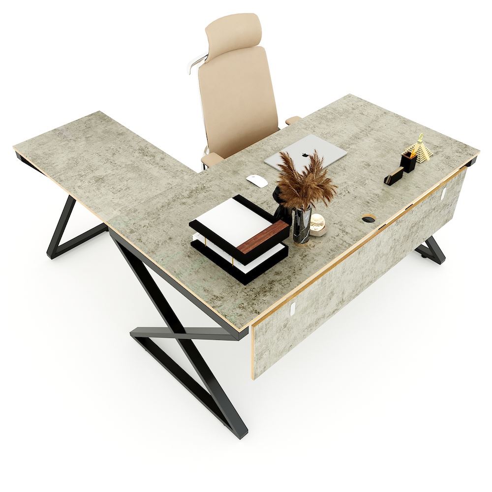 Bàn giám đốc chữ L gỗ Plywood phủ melamin chân Xconcept HBXC042 với mặt bàn gỗ Plywood cốt gỗ tự nhiên bề mặt phủ melamin được xử lý chống thấm nước và cong vênh, mặt bàn màu bê tông độc đáo chắc chắn là điểm nhấn thú vị cho không gian làm việc của bạn. Kết hợp mặt bàn gỗ Plywood là hệ khung chân hệ Xconcept cơ cấu lắp ráp ngàm vô cùng chắc chắn và dễ dàng tháo lắp di dời, chân sắt sơn tĩnh điện chất lượng cao bền bỉ theo thời gian.
