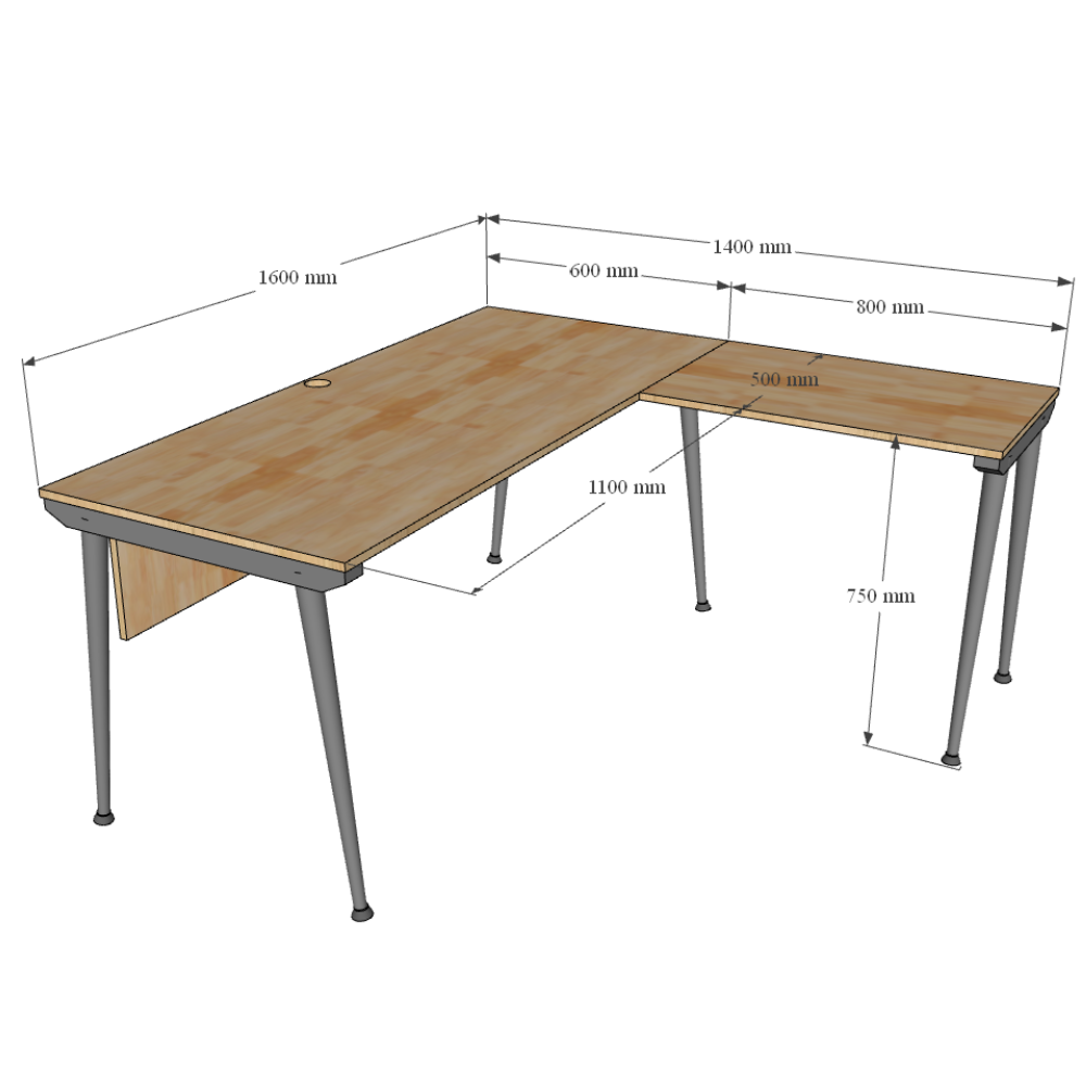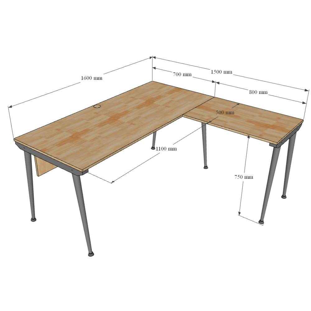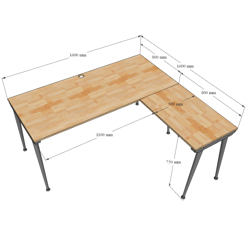 Kích thước chi tiết bàn làm việc góc L 160x150cm