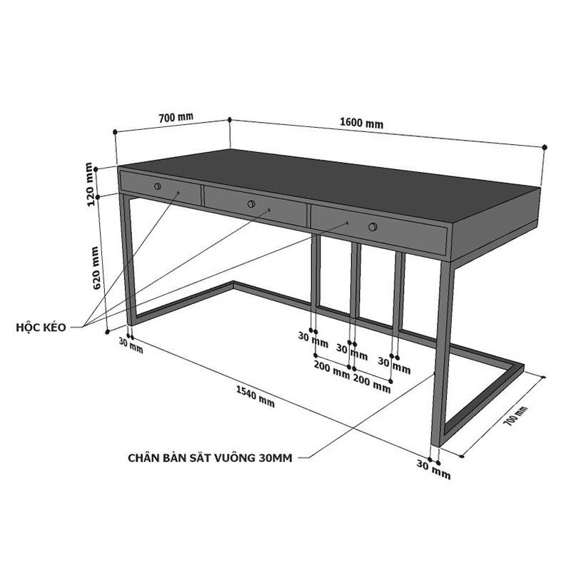 Bàn giám đốc 160x70cm có ngăn kéo gỗ cao su chân sắt
