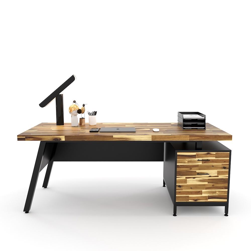 Bàn giám đốc 180x80cm chân bàn kết hợp tủ BGD68058 với mặt bàn GỖ TRÀM dày 25mm tiêu chuẩn AA được xử lý PU hoàn thiện cho bề mặt sản phẩm rất đẹp mắt kết hợp với khung chân được làm từ sắt vuông 50mm sơn tĩnh điện cao cấp bền bỉ theo thời gain. Chân bàn bên phải kết hợp tủ 2 ngăn kéo tăng không gian lưu trữ mà không tốn nhiều diện tích nên những mẫu bàn làm việc kết hợp chân tủ được nhiều khách hàng yêu thích và lựa chọn sử dụng cho không gian làm việc của mình.