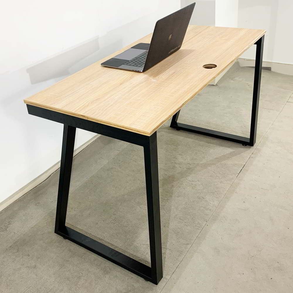 Bàn làm việc gỗ Plywood chân sắt hệ Trapez 2 lắp ráp