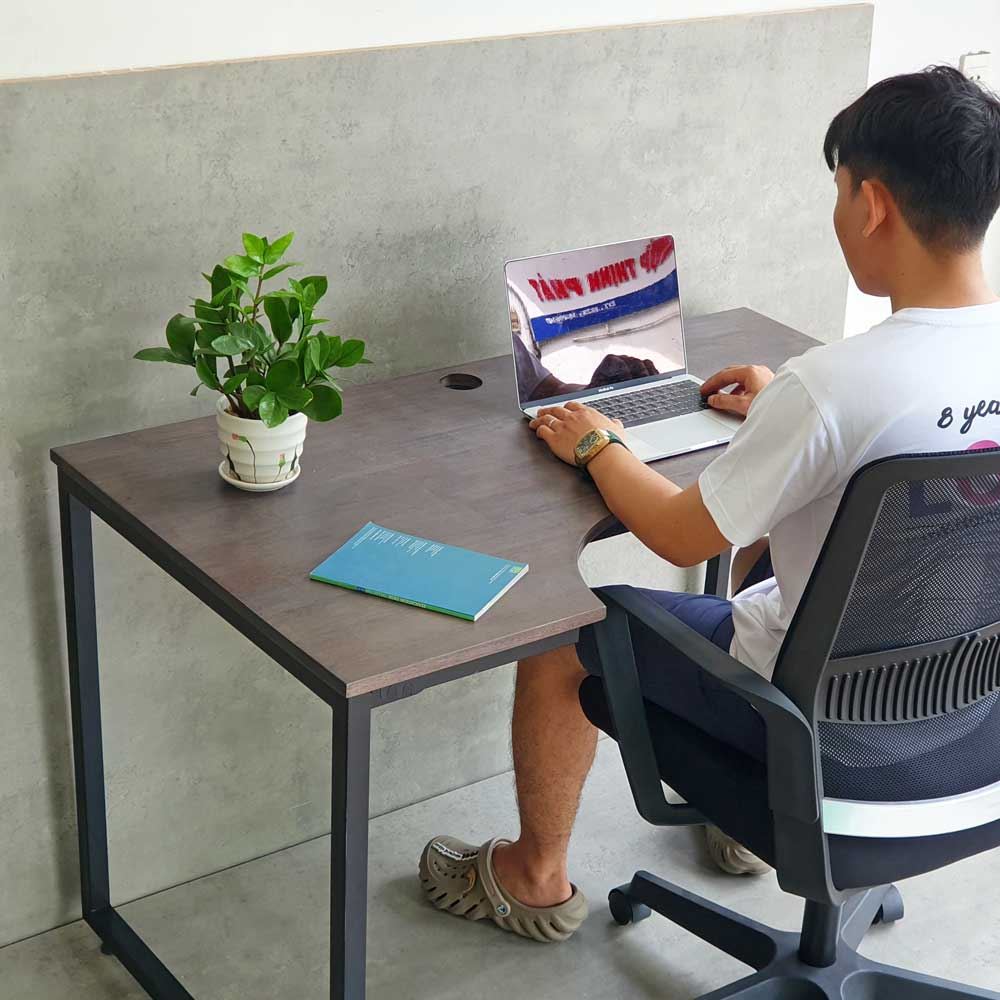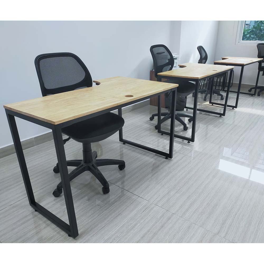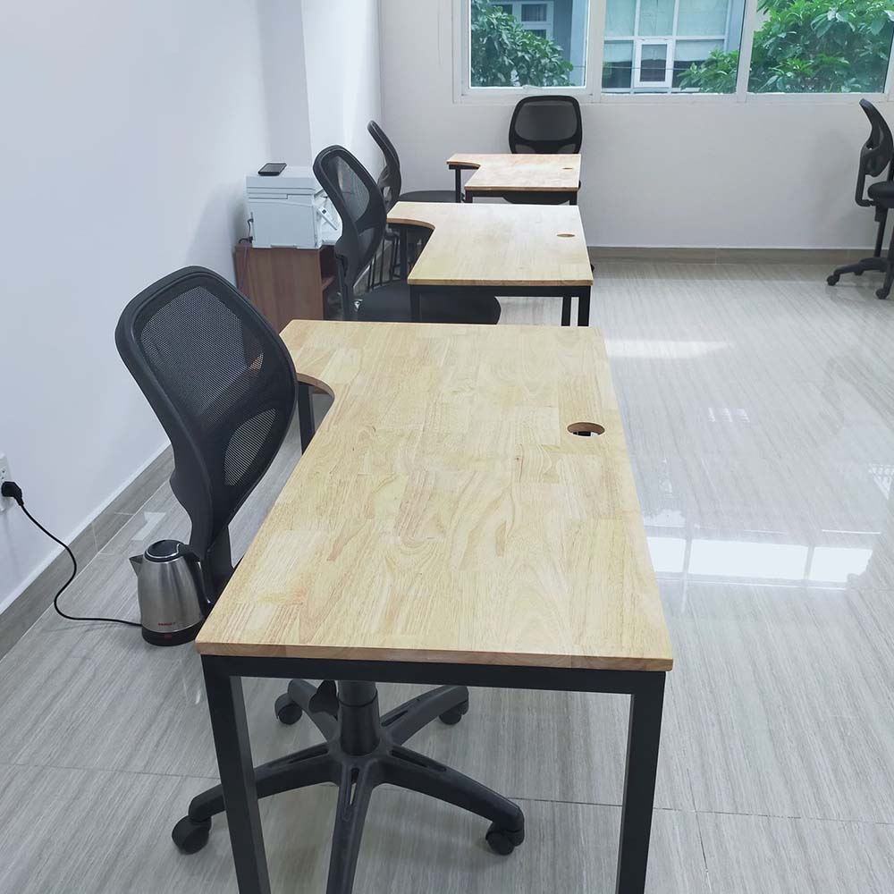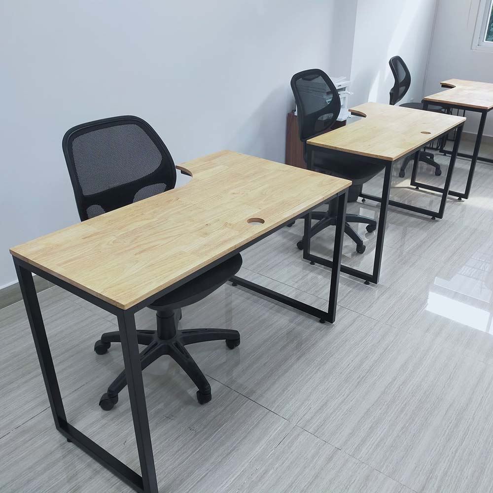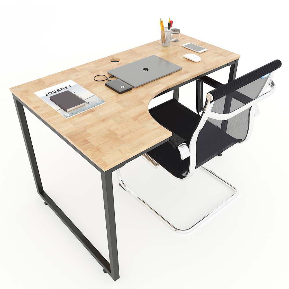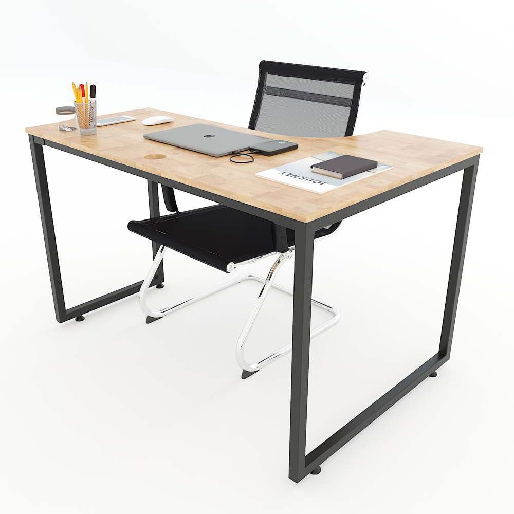 Bàn góc chữ L 120x70cm gỗ cao su chân sắt lắp ráp