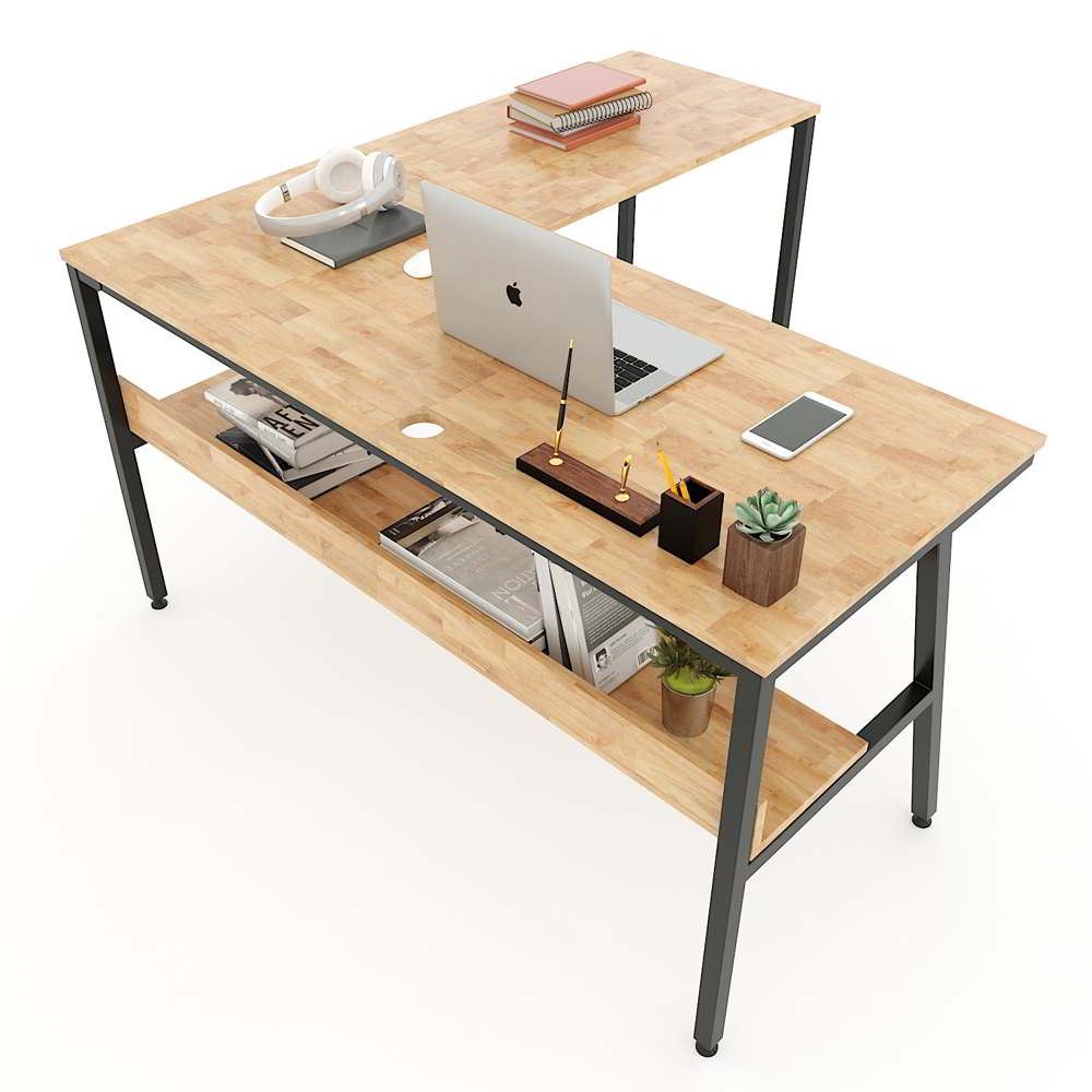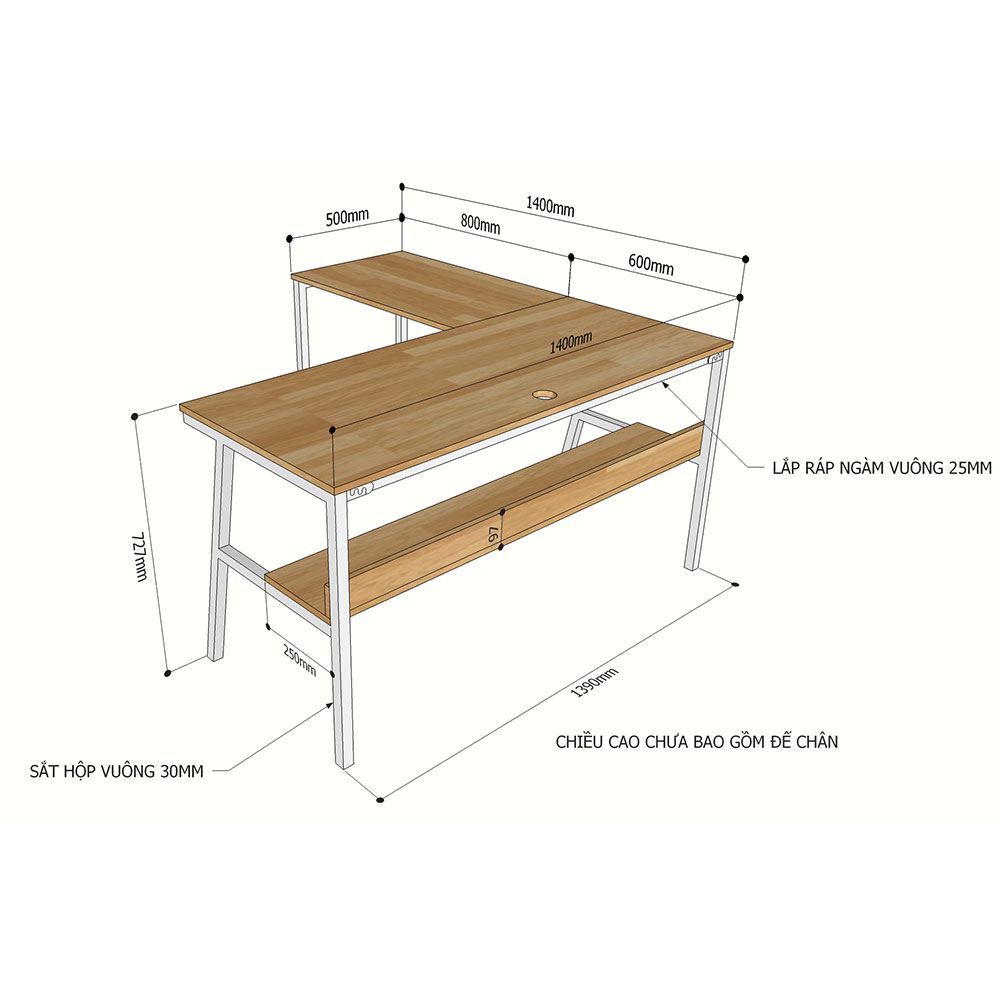 Bàn góc kết hợp kệ chân sắt lắp ráp CD68014 với chân bàn được làm từ sắt vuông 30x30mm mang đến vẻ đẹp tinh tế nhưng không kém phần chắc chắn, chân bàn liên kết với nhau theo cơ cấu lắp ráp ngàm 25x25mm giúp bạn dễ dàng tháo lắp, thuận tiện di dời vận chuyển. Mặt bàn gỗ cao su ghép tiêu chuẩn AA dày 17mm PU màu gỗ tự nhiên luôn có một vẻ đẹp riêng, thân thiện với môi trường, đối với các văn phòng mở, văn phòng kết hợp với cây xanh thì việc sử dụng bàn gỗ cao su chân sắt kết hợp trở nên hoàn hảo. Chất liệu gỗ cao su tại HomeOffice là gỗ ghép dày 17mm tiêu chuẩn AA ( 2 mặt đẹp) được xử lý qua 4 công đoạn trước khi PU hoàn thiện cho bề mặt sản phẩm rất đẹp mắt, chống nước tuyệt đối.