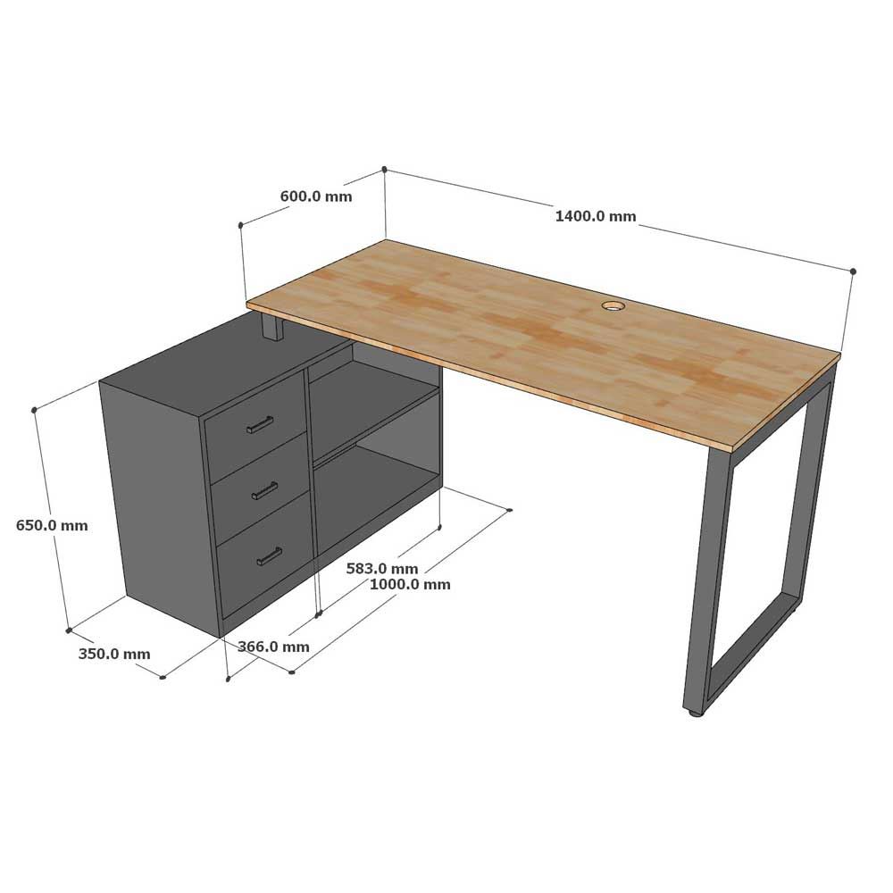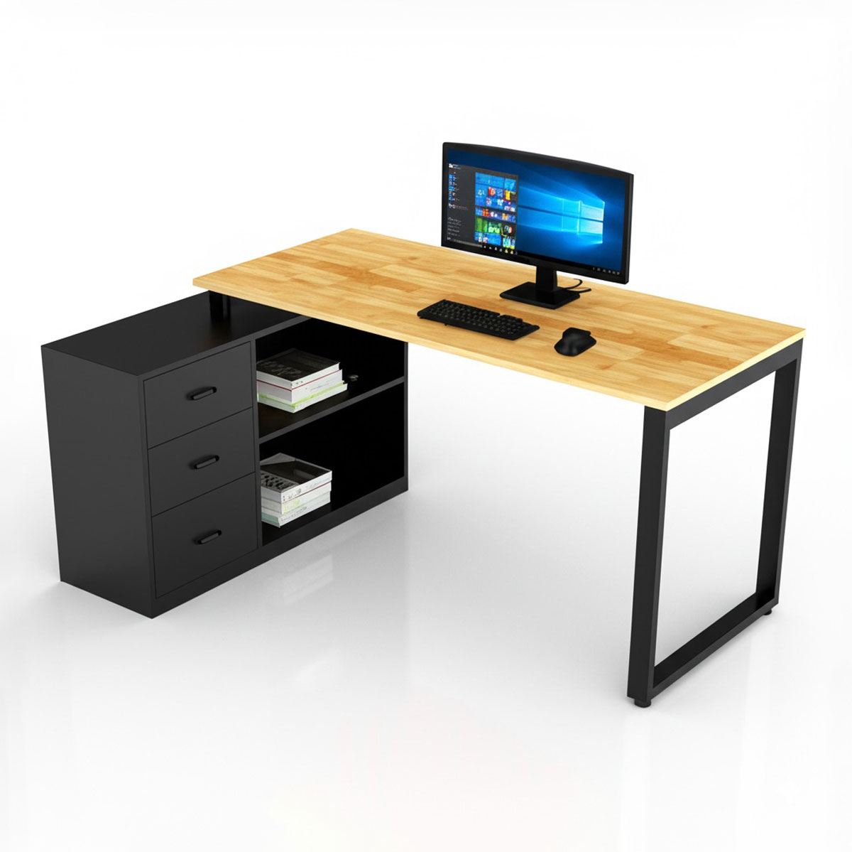 Bàn làm việc CD68028 với khung chân sắt gác lên mặt tủ giúp tối ưu diện tích sử dụng, mang lại không gian học tập/làm việc thoải mái, tiện lợi cho người sử dụng. Bàn chữ L này được bố trí thêm một ngăn tủ tài liệu bên hông bàn làm việc, với 3 ngăn kéo và 2 tầng kệ, giúp lưu trữ được nhiều đồ dùng, tài liệu, sách vở. Kích thước mặt bàn 140x60cm rộng rãi, thoải mái giúp bạn đặt thêm máy tính, tài liệu, đồ dùng...