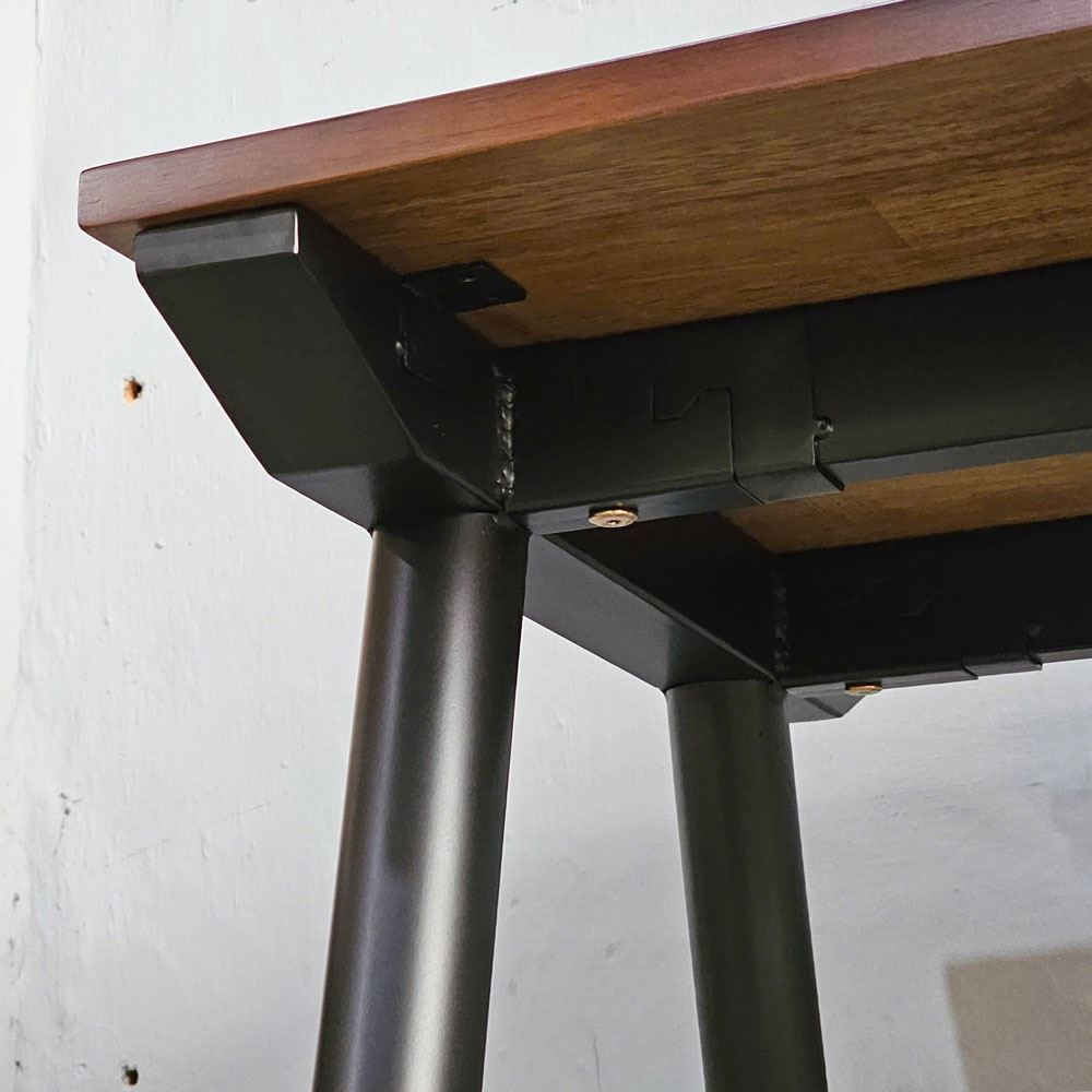 Bàn được sử dụng chất liệu gỗ cao su chuẩn AA dày 17mm, thân thiện với môi trường, đối với các văn phòng mở, văn phòng kết hợp với cây xanh thì việc sử dụng bàn gỗ cao su chân sắt kết hợp trở nên hoàn hảo. Gỗ được xử lý qua 4 công đoạn trước khi PU hoàn thiện cho bề mặt sản phẩm rất đẹp mắt, chống nước tuyệt đối. Khung chân sắt sơn tĩnh điện với cơ cấu ngàm lắp ráp dễ dàng, giúp vận chuyển dễ dàng và linh hoạt.