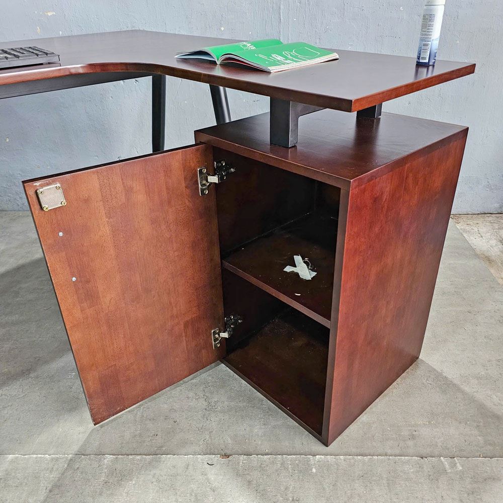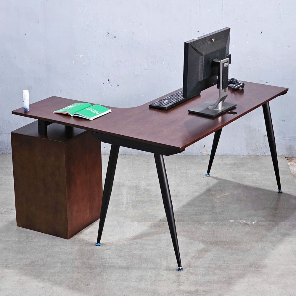 Bàn làm việc HBCO059 với thiết kế chân sắt hệ CONE mang lại vẻ đẹp thanh lịch và hiện đại cho không gian làm việc. Mặt bàn được làm từ gỗ tự nhiên có vân gỗ đẹp mắt, mang đến cảm giác sang trọng và ấm áp. Ngăn tủ có kích thước rộng rãi, giúp bạn lưu trữ nhiều tài liệu, hồ sơ và các vật dụng cá nhân một cách gọn gàng, ngăn nắp. Nhờ vậy, bạn có thể tiết kiệm diện tích và tạo sự thông thoáng cho không gian làm việc. Thiết kế góc L giúp tối ưu hóa không gian sử dụng.