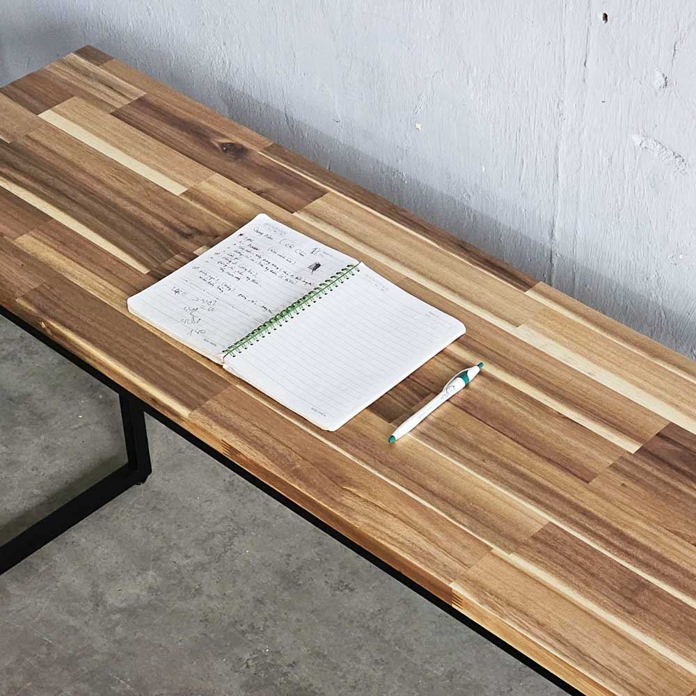 Mặt bàn gỗ tràm AA đã qua xử lý chống thấm và chà nhám kỹ lưỡng, không chỉ mang đến vẻ đẹp tự nhiên mà còn tạo cảm giác thoải mái khi làm việc