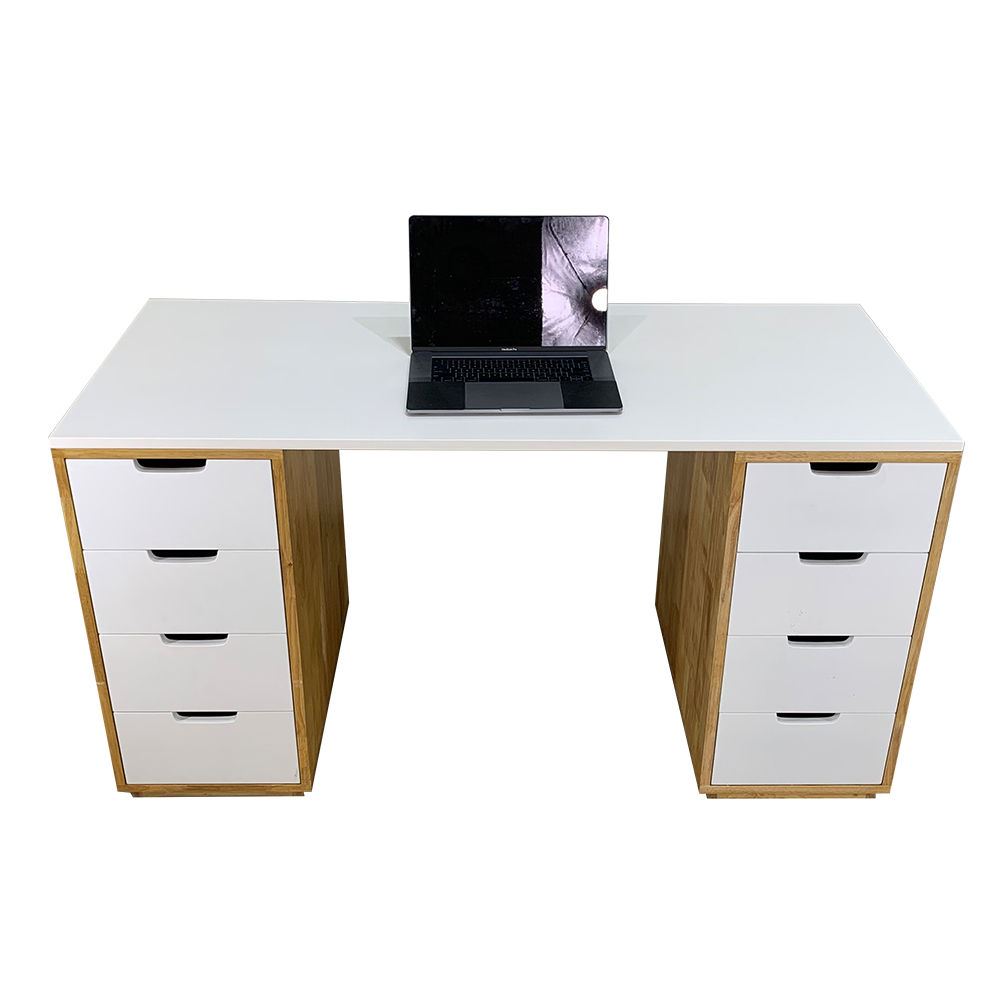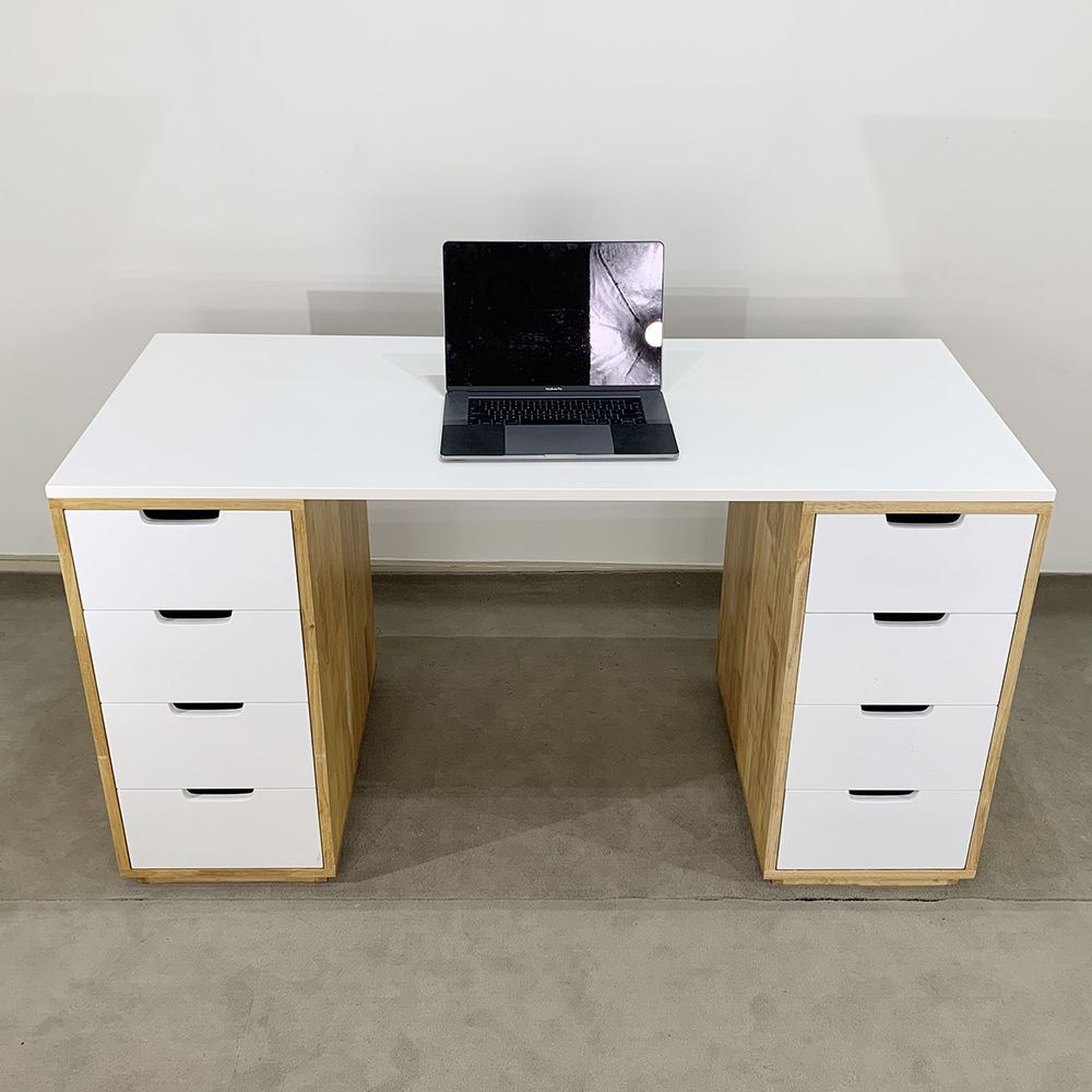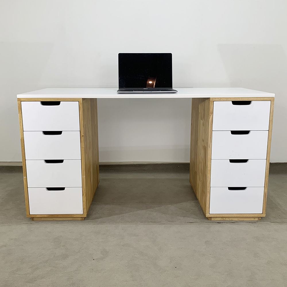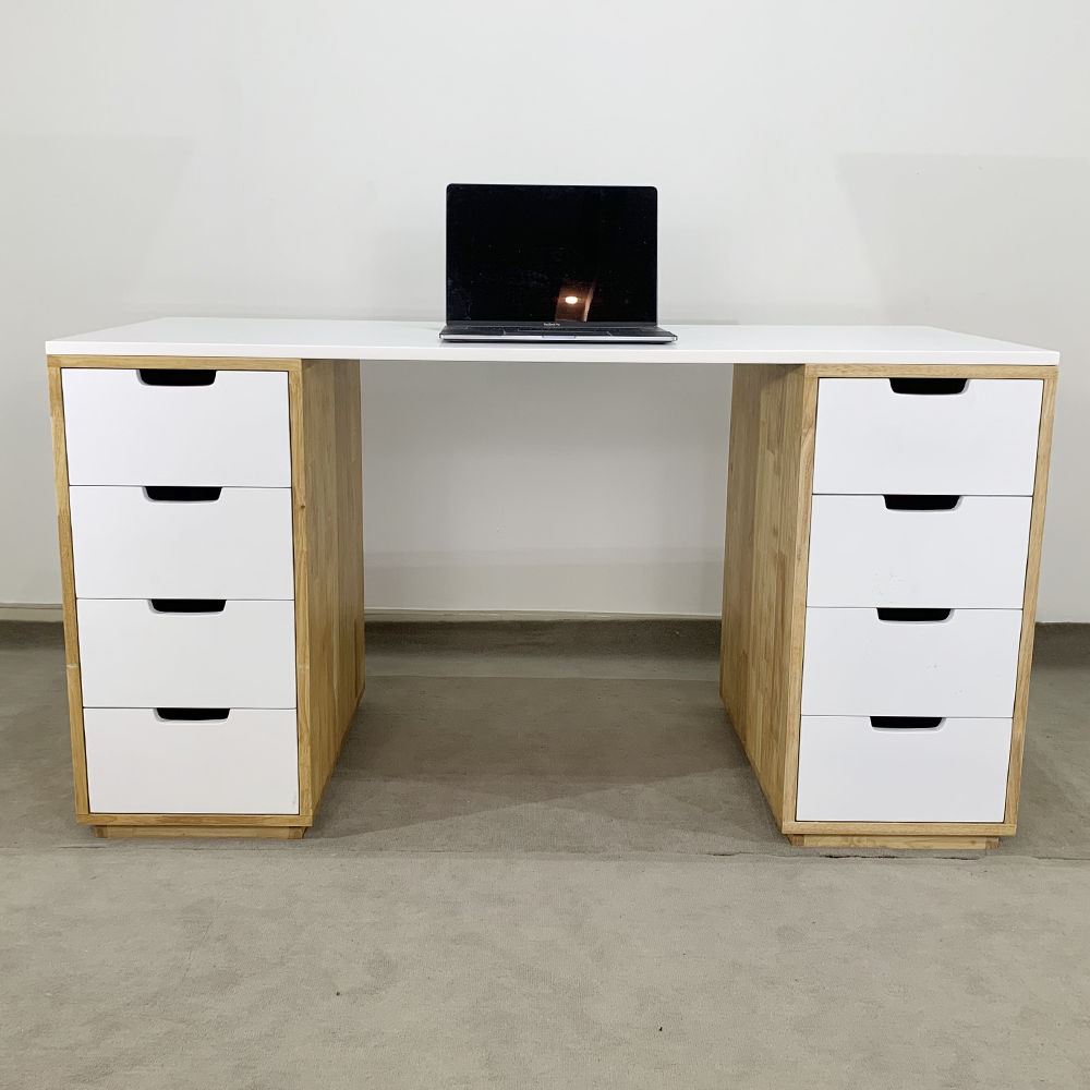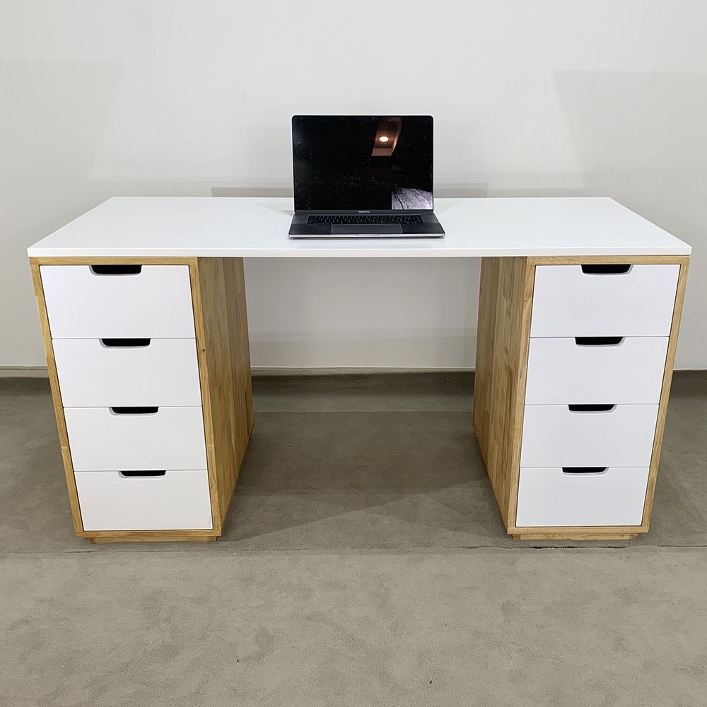 Bàn làm việc chân tủ 140x60cm BD68050 là mẫu bàn rất tiện lợi với 2 chân là hệ tủ hộc kéo 4 ngăn cao 73cm rất tiện lợi vói chiều ngang tủ 35cm với chất liệu gỗ cao su tiêu chuẩn AA dày 17mm sơn PU ưu việt, mặt bàn kích thước 60x140cm sơn Pu trắng đẹp mắt kết hợp với 2 chân tủ cửa hộc kéo trắng là điểm nhấn cho sản phẩm