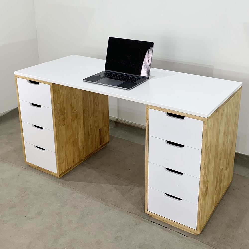 Bàn học hai chân chủ hai bên Gỗ Cao Su mặt Trắng