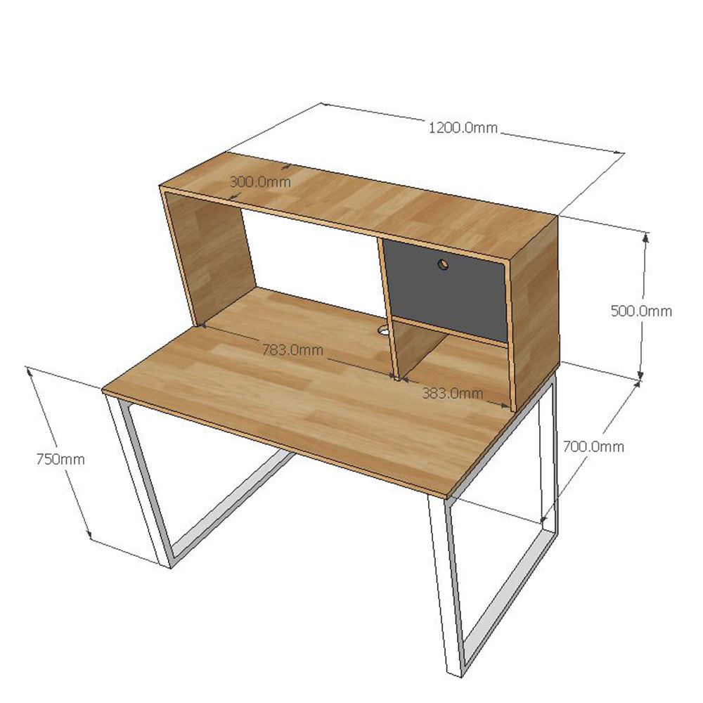 Bàn học liền kệ 70x120x120cm FD68018 với mặt bàn và kệ được làm từ gỗ cao su tiêu chuẩn AA dày 17mm sơn PU màu tự nhiên cực đẹp, hệ kệ có hộc kéo hai bên tiện lợi cùng với đó là hệ chân sắt lắp ráp sơn tĩnh điện chắc chắn