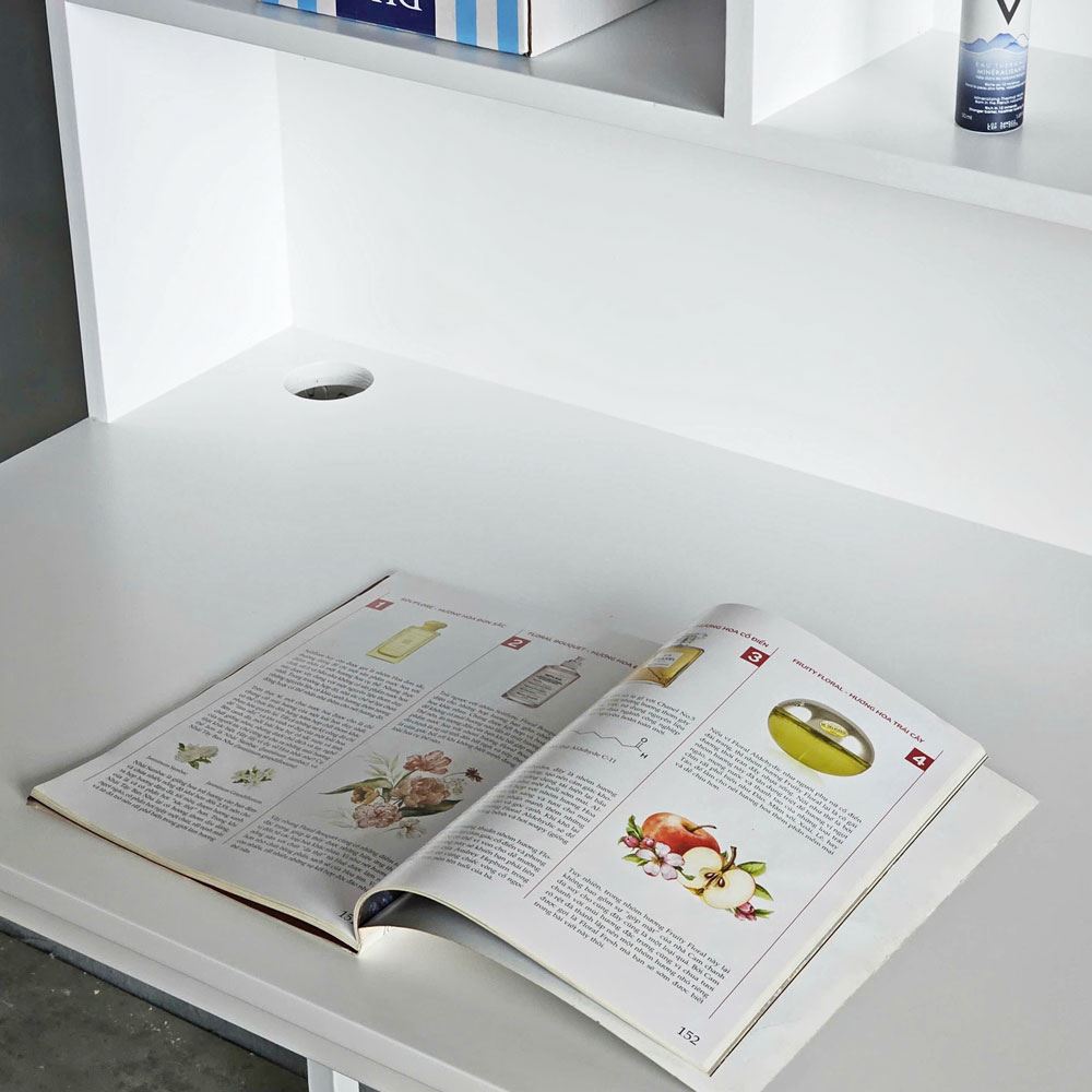 Giá sách tích hợp với mặt bàn, giúp bạn dễ dàng sắp xếp sách vở, tài liệu, tạo nên một không gian làm việc/học tập ngăn nắp và hiệu quả