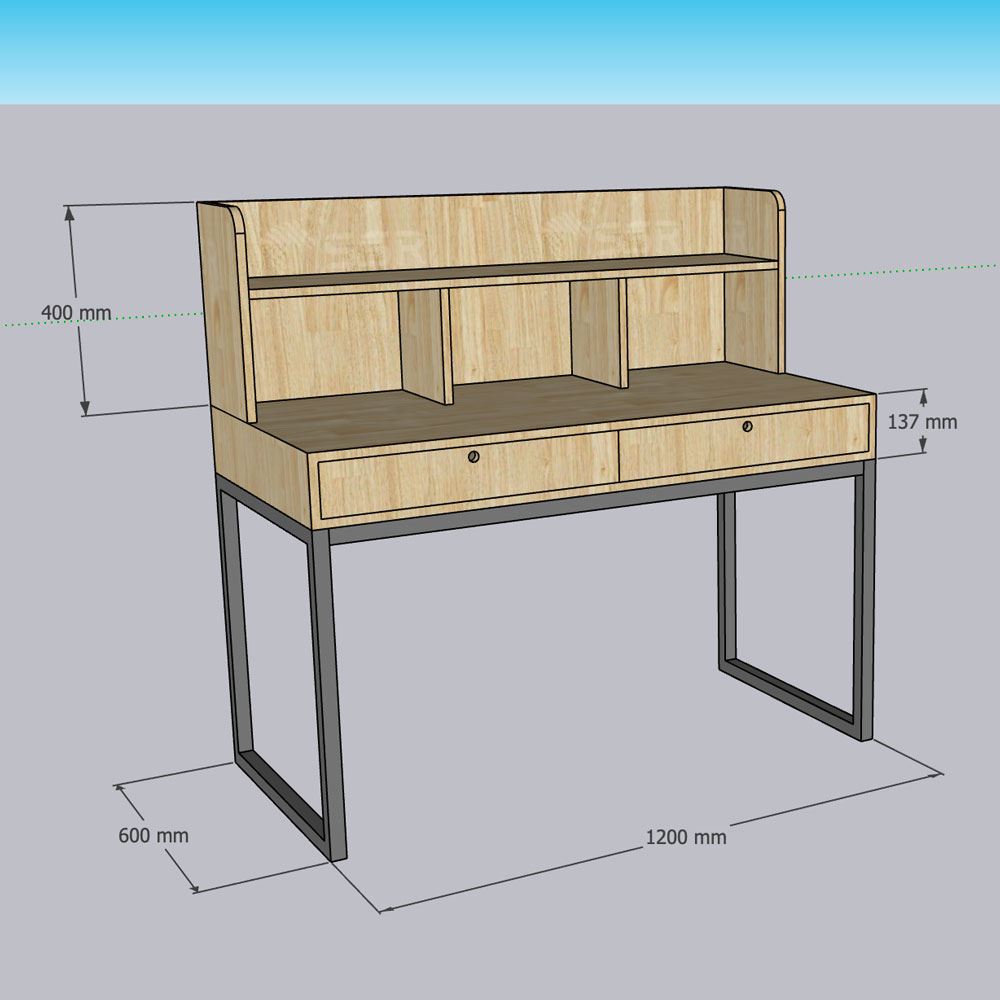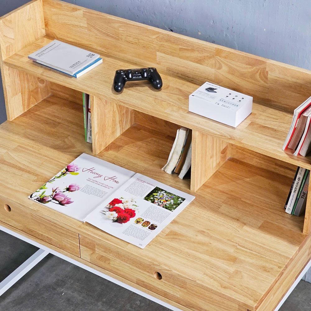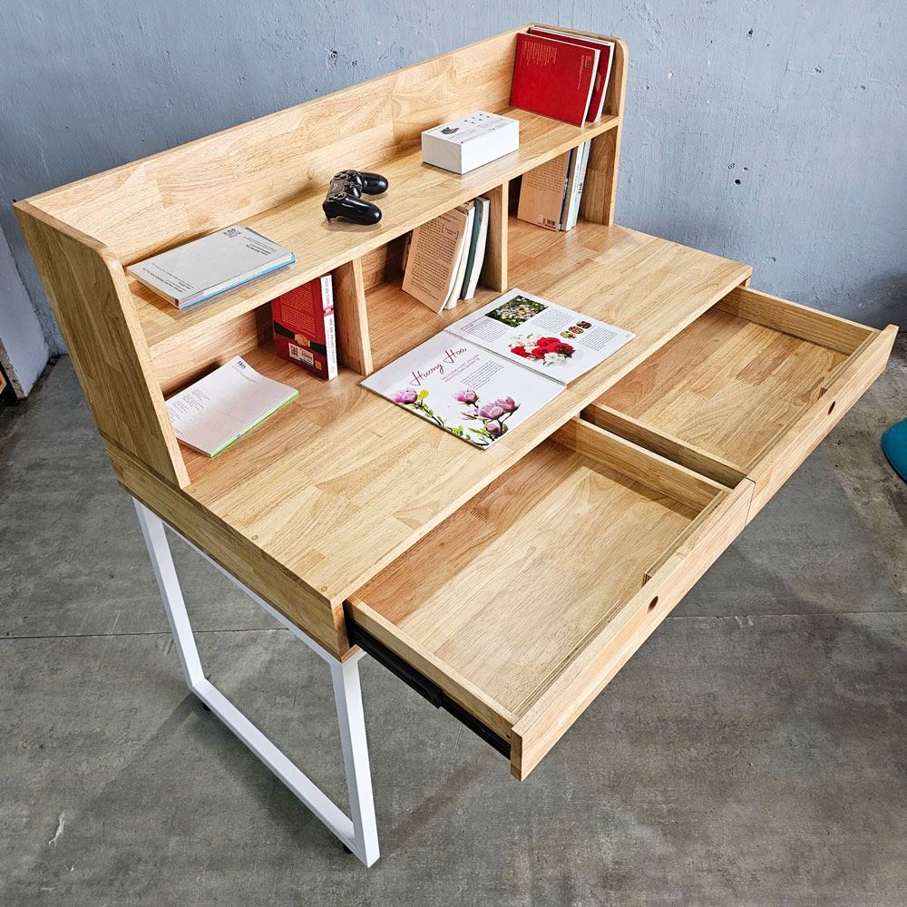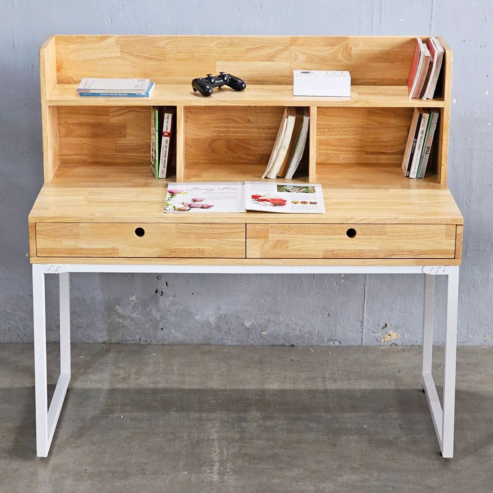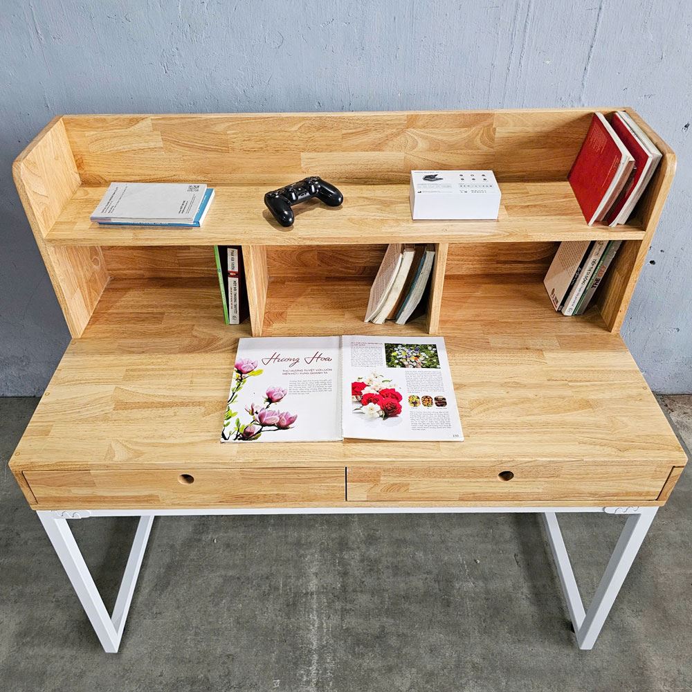 Bàn học liền kệ 120x60x115cm gỗ cao su chân sắt BD68148