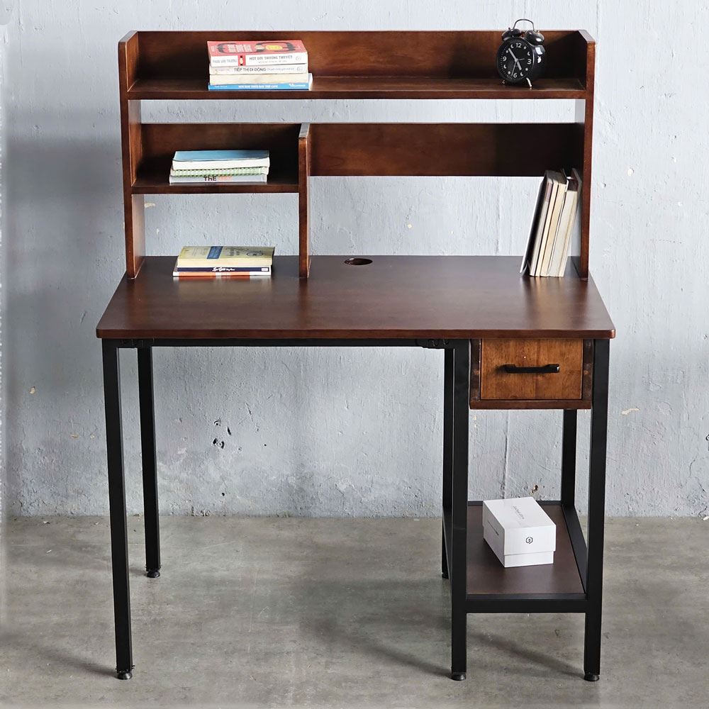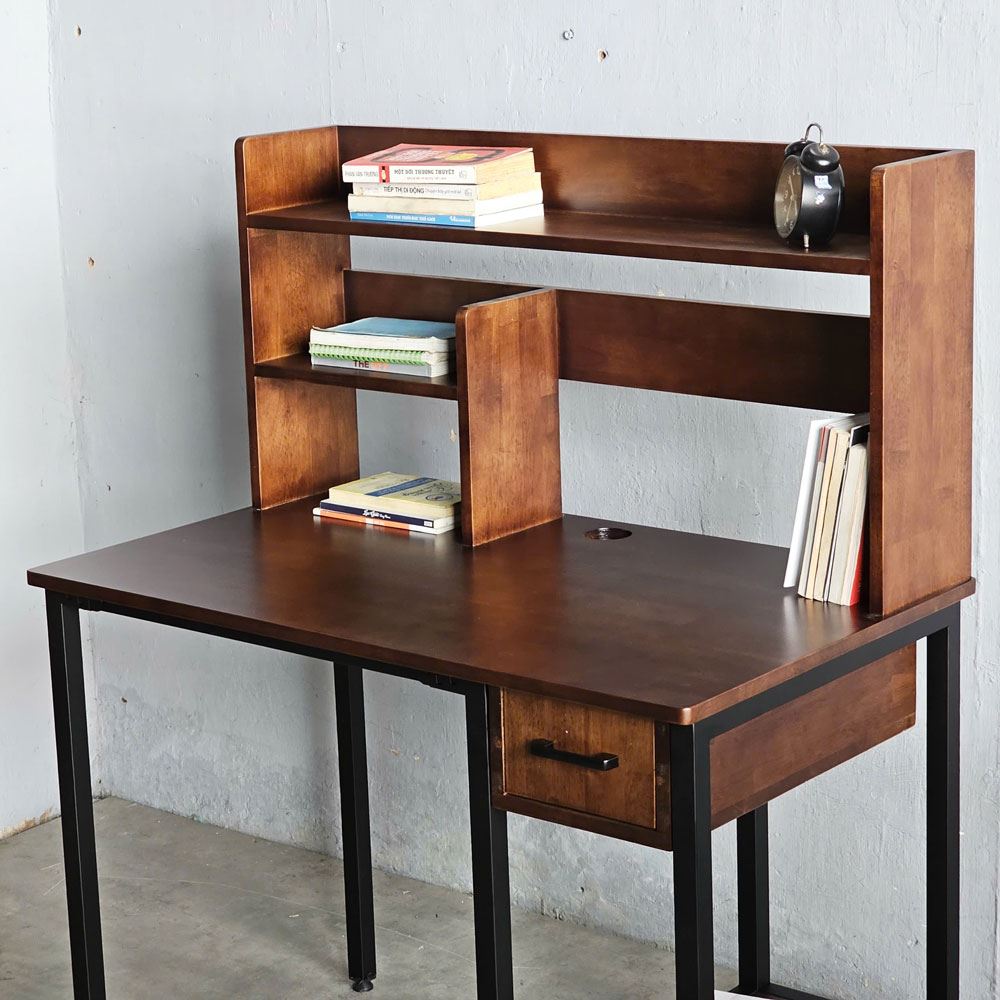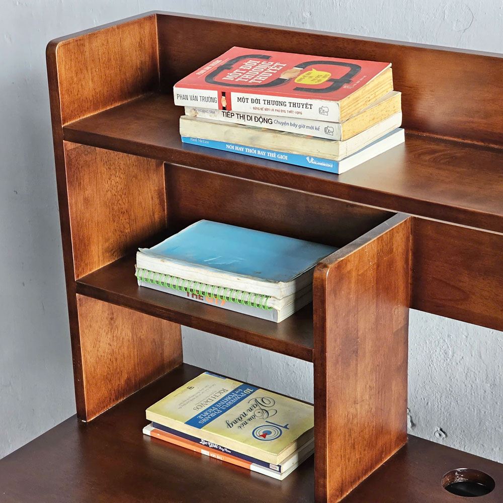 Kệ sách trên mặt bàn không chiếm quá nhiều diện tích, nhưng vẫn đảm bảo khả năng lưu trữ sách vở, tài liệu và đồ dùng cá nhân một cách gọn gàng