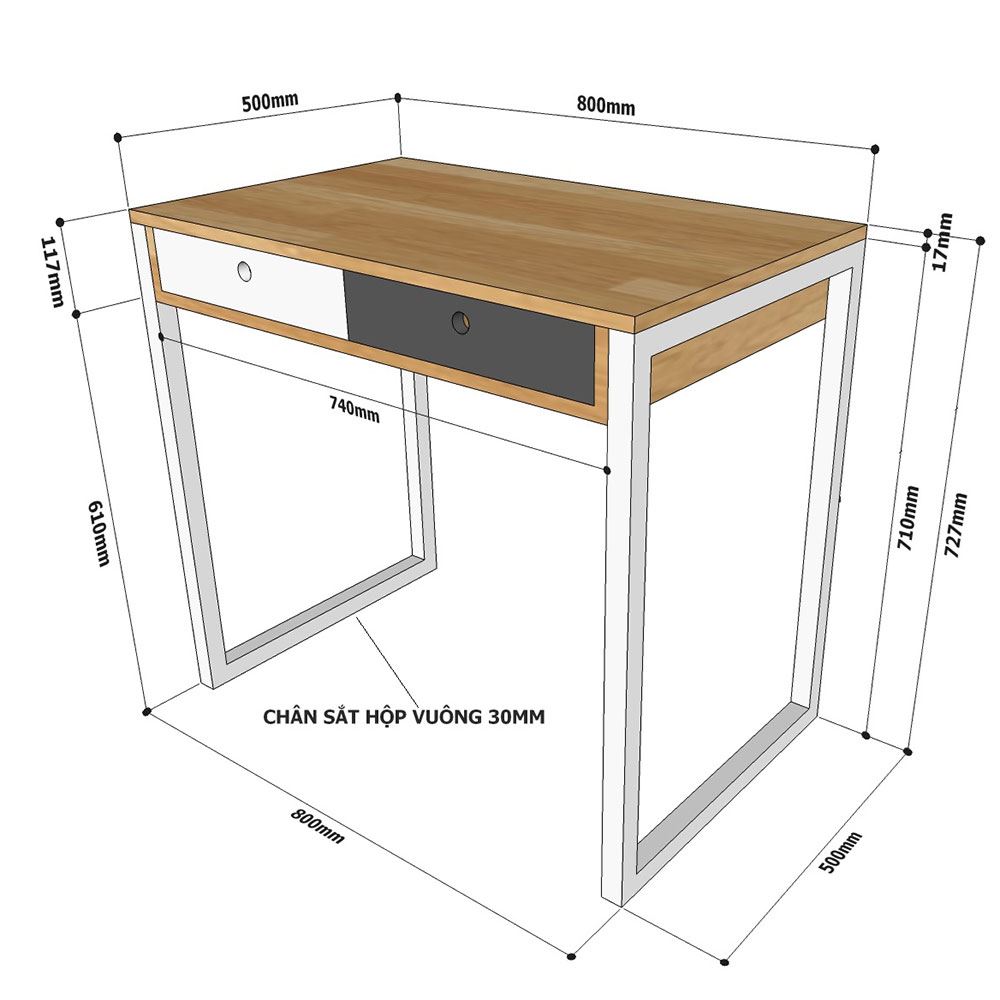 Mẫu bàn 2 ngăn kéo có kích thước rất gọn gàng