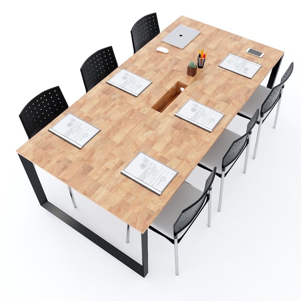 Bàn Họp Trian Trian HBTA009 với chân bàn được làm từ sắt hình TAM GIÁC 55X55X78mm ( Sắt tam giác đều ) lắp ráp ngàm chắc chắn sơn tĩnh điện kết hợp với mặt bàn từ chất liệu gỗ cao su tiêu chuẩn AA dày 17mm được PU hoàn thiện với 5 màu sắc lựa chọn rất đẹp. Bàn Họp Trian với chiều cao tiêu chuẩn 75cm phù hợp với mọi loại ghế văn phòng phù hợp với nhiều không gian, mặt bàn kích thước 100x200cm phù hợp từ 6-8 người sử dụng.