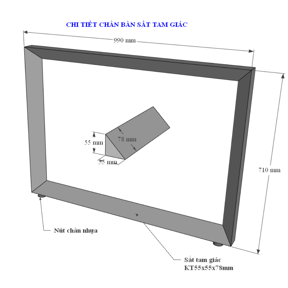 Chân bàn có giăng bàn sắt 25x50mm lắp ráp đỡ mặt bàn chắc chắn