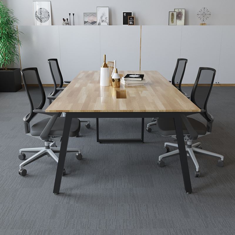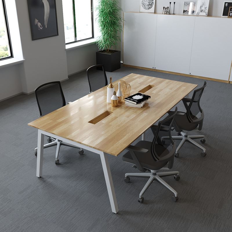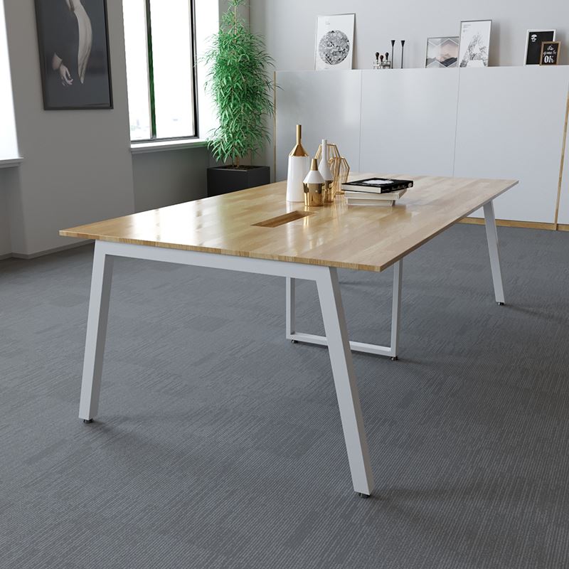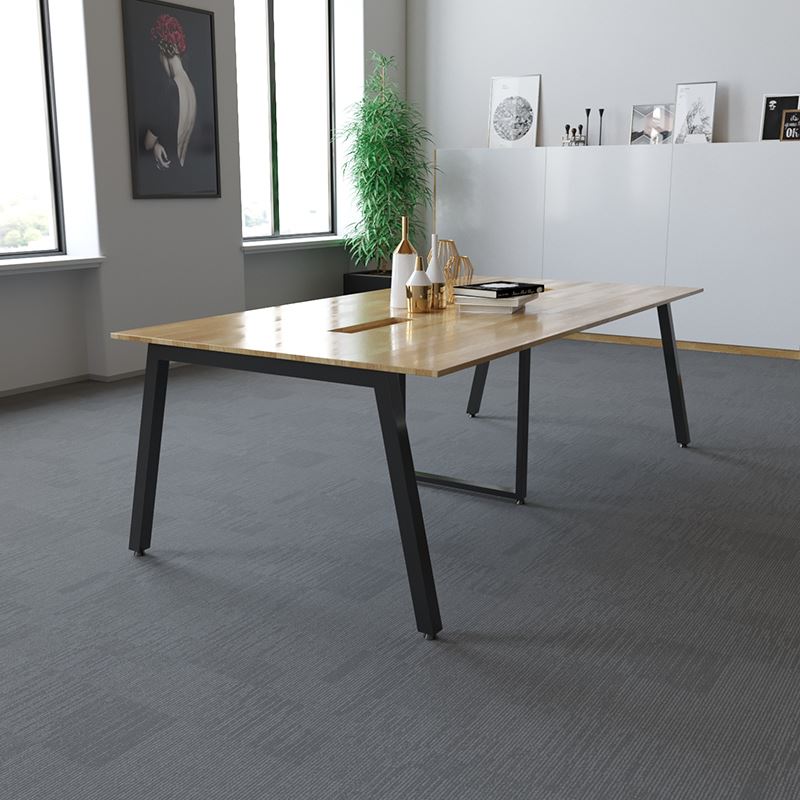 Bàn Họp HBAT012 Aton Concept chân sắt chữ nhật 25x50. Bàn văn phòng gỗ cao su ghép tiêu chuẩn AA dày 17mm PU màu gỗ tự nhiên luôn có một vẻ đẹp riêng, thân thiện với môi trường, đối với các văn phòng mở, văn phòng kết hợp với cây xanh thì việc sử dụng bàn gỗ cao su chân sắt kết hợp trở nên hoàn hảo. Chất liệu gỗ cao su tại Home Office là gỗ ghép dày 17mm tiêu chuẩn AA ( 2 mặt đẹp) được xử lý qua 4 công đoạn trước khi PU hoàn thiện cho bề mặt sản phẩm rất đẹp mắt, chống nước tuyệt đối. Khung chân sắt sơn tĩnh điện với cơ cấu ngàm lắp ráp dễ dàng.