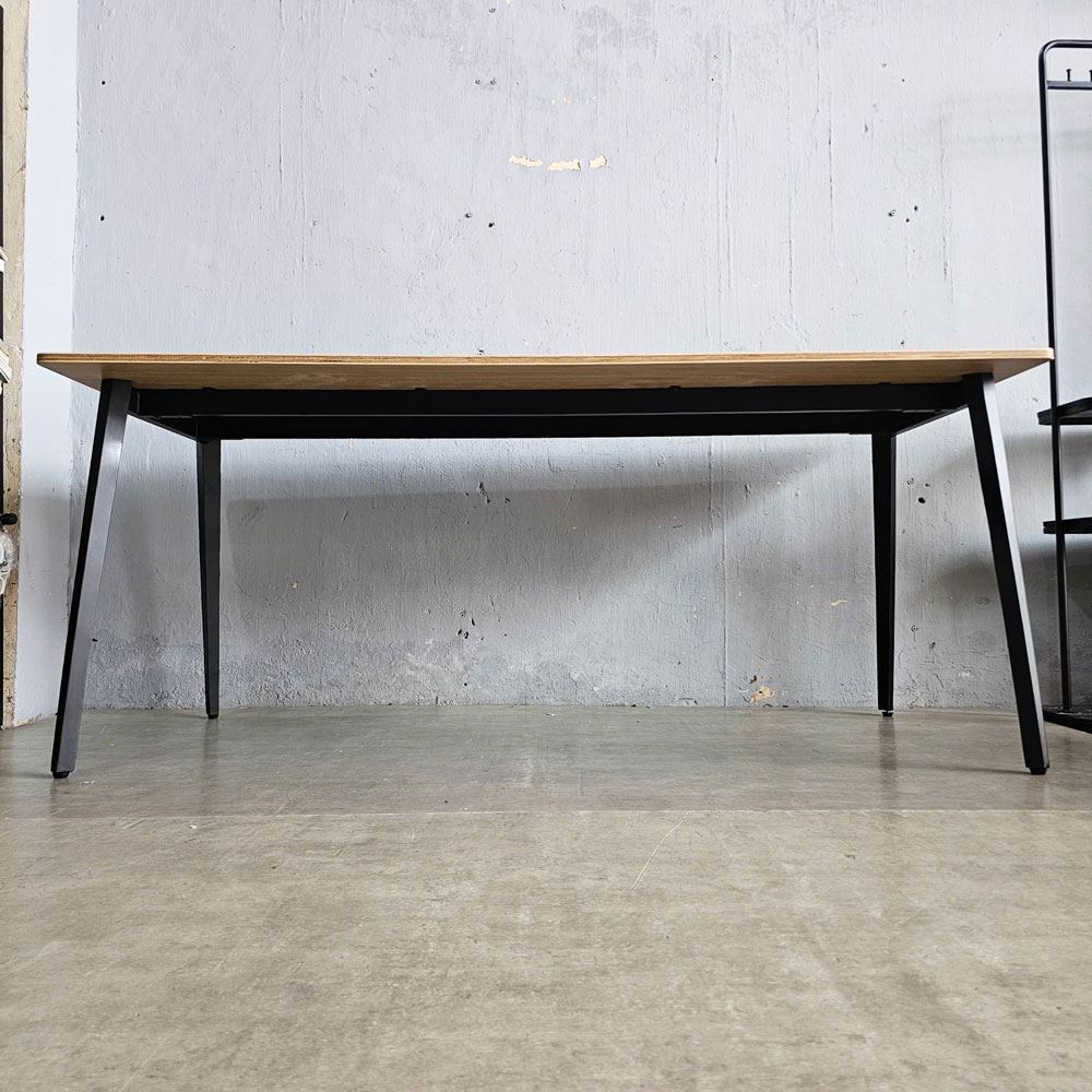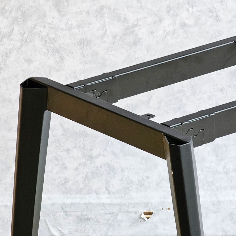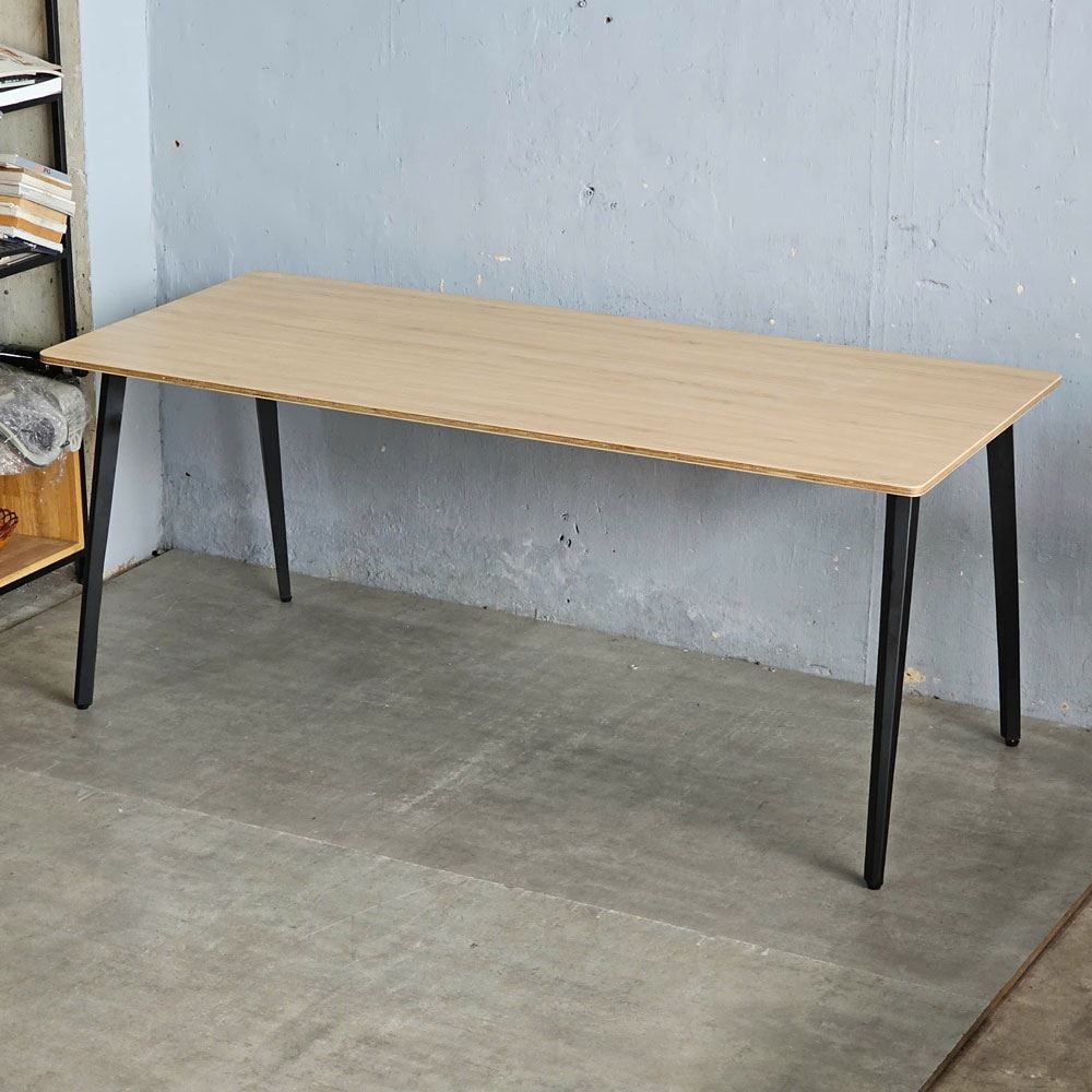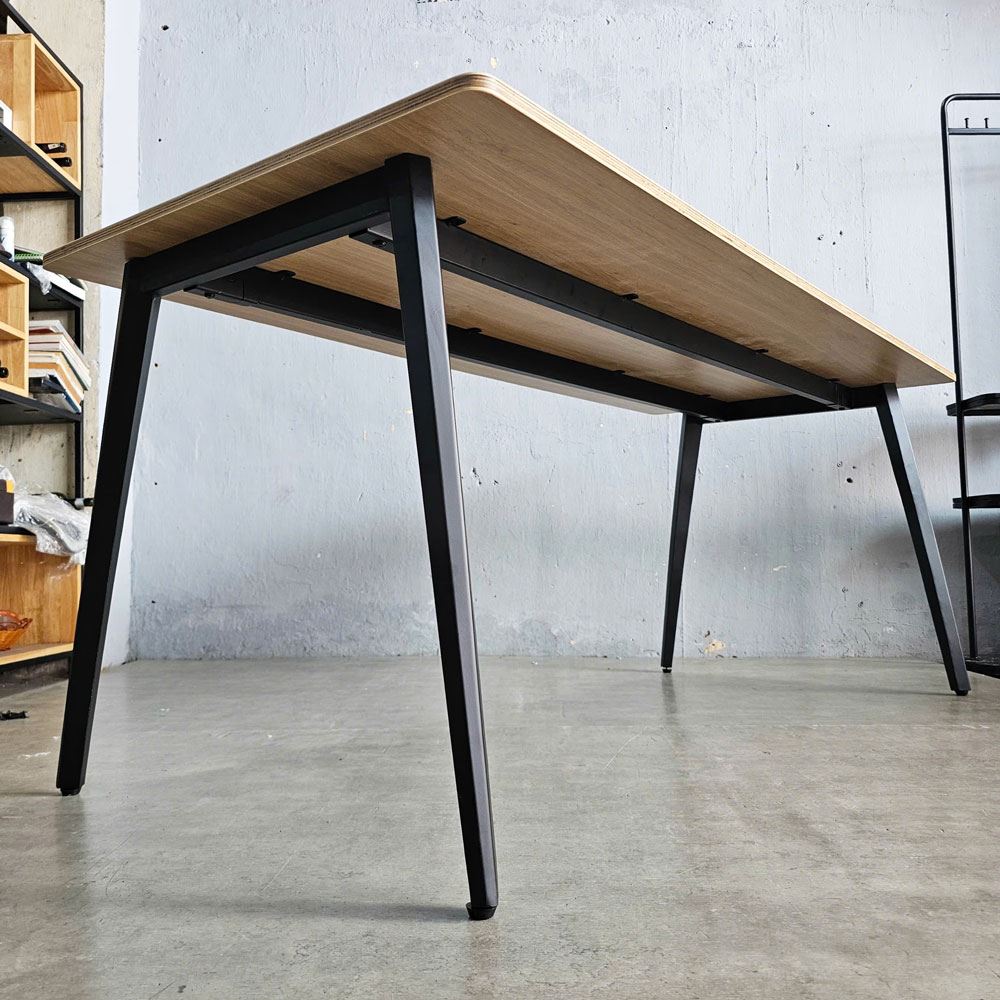 Với mặt bàn được làm bằng gỗ plywood, có cấu trúc từ những tấm ván ép lại với nhau tạo ra một cấu trúc khá vững chắc. Sự xen kẽ giữa các lớp gỗ và việc sử dụng keo chịu nước để liên kết chúng làm tăng tính cứng của vật liệu. Điều này cho phép gỗ plywood chịu được sức ép và trọng lượng lớn hơn so với gỗ thông thường mà không bị cong vênh hay biến dạng nhiều. Hệ khung chân sắt sử dụng loại sắt dày dặn, giúp cho bàn luôn đảm bảo độ cứng cáp, ổn định và khả năng chịu lực tốt. Bề mặt khung chân sắt được phủ một lớp sơn tĩnh điện bảo vệ giúp chống ăn mòn, tăng tuổi thọ sản phẩm và đồng thời đảm bảo tính thẩm mỹ cao.