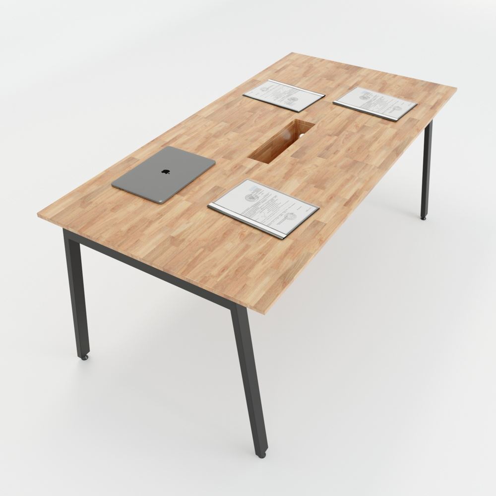 Bàn Họp HBAT010 Aton Concept chân sắt chữ nhật 25x50. Bàn văn phòng gỗ cao su ghép tiêu chuẩn AA dày 17mm PU màu gỗ tự nhiên luôn có một vẻ đẹp riêng, thân thiện với môi trường, đối với các văn phòng mở, văn phòng kết hợp với cây xanh thì việc sử dụng bàn gỗ cao su chân sắt kết hợp trở nên hoàn hảo. Chất liệu gỗ cao su tại Home Office là gỗ ghép dày 17mm tiêu chuẩn AA ( 2 mặt đẹp) được xử lý qua 4 công đoạn trước khi PU hoàn thiện cho bề mặt sản phẩm rất đẹp mắt, chống nước tuyệt đối. Khung chân sắt sơn tĩnh điện với cơ cấu ngàm lắp ráp dễ dàng.