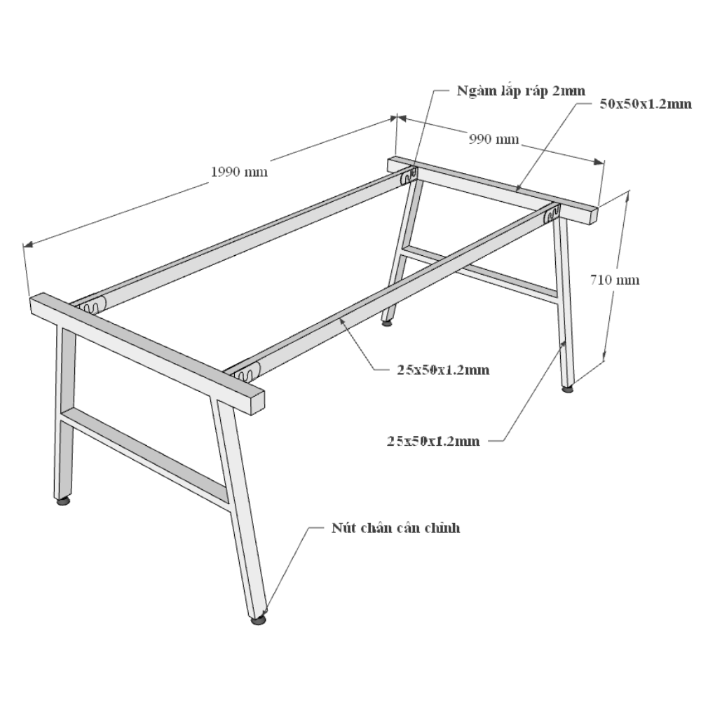 Chân bàn sắt lắp ráp sơn tĩnh điện cao cấp đảm bảo độ bền