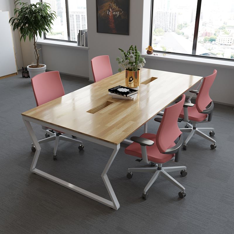 Bàn họp chân sắt lắp ráp gỗ cao su