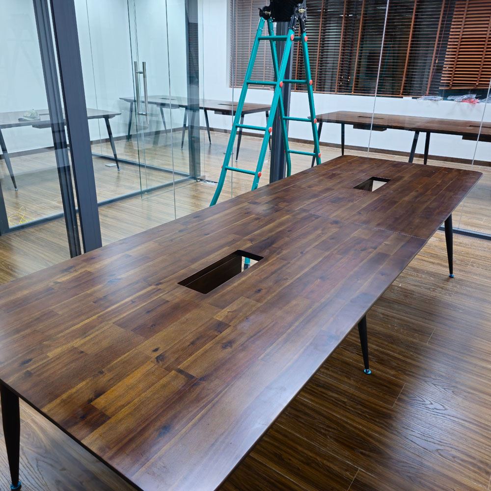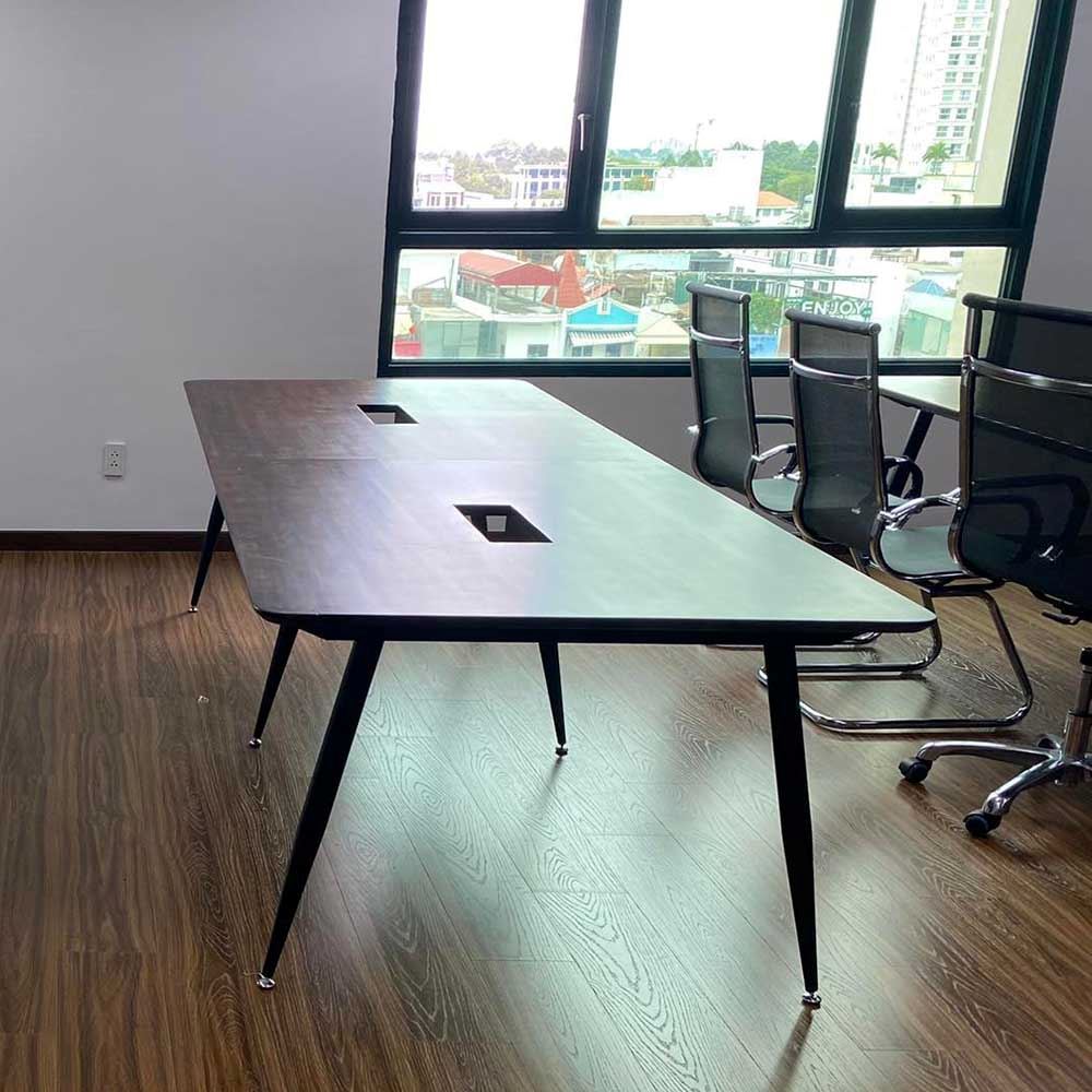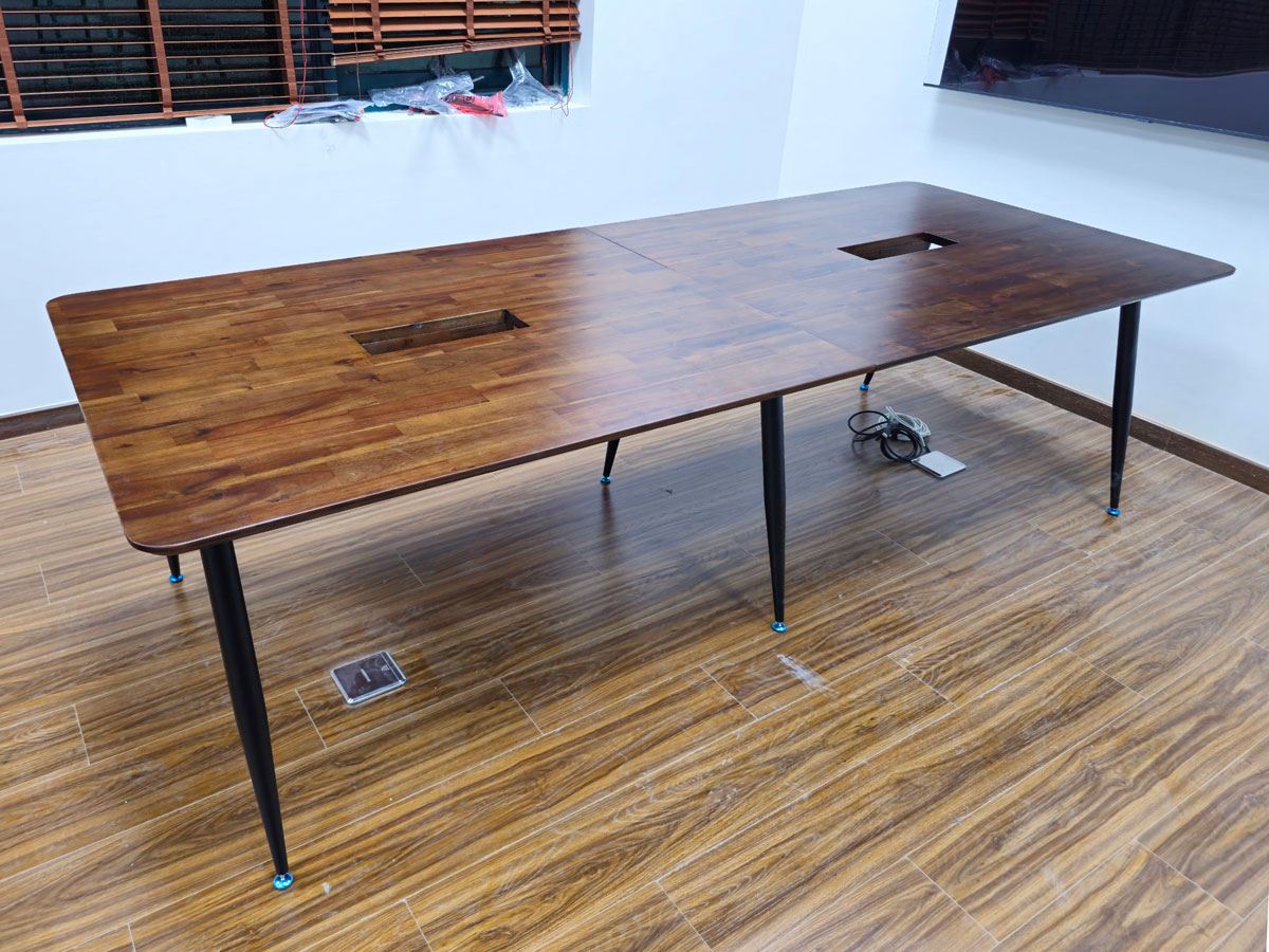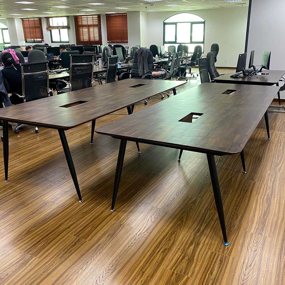 Bàn họp 2.8m gỗ Tràm chân CONE - HBCO050 là mẫu bàn họp kết hợp bàn làm việc được HomeOffice thiết kế và sản xuất cho văn phòng công ty CYBER Logistic Việt Nam, và được chúng tôi đưa lên thành bản thương mại. Với hệ 3 chân vuốt côn lắp ráp rất chắc chắn, kết hợp với mặt bàn gỗ Tràm dày 25mm được sơn PU màu gỗ Óc Chó rất sang trọng, các cạnh đều được bo mềm mại. Hãy tới HomeOffice và mọi yêu cầu của bạn sẽ được thực hiện.
