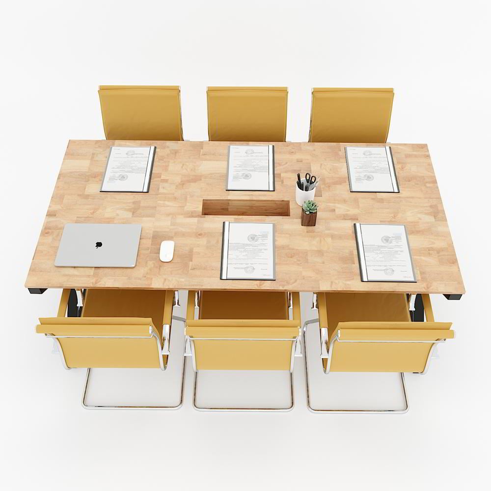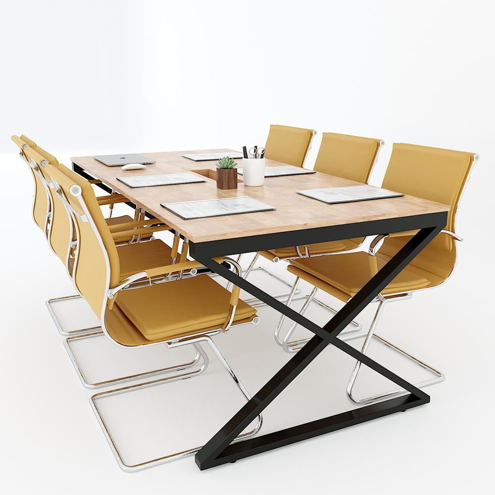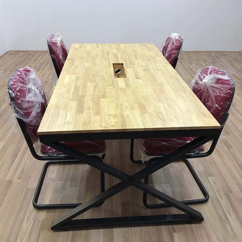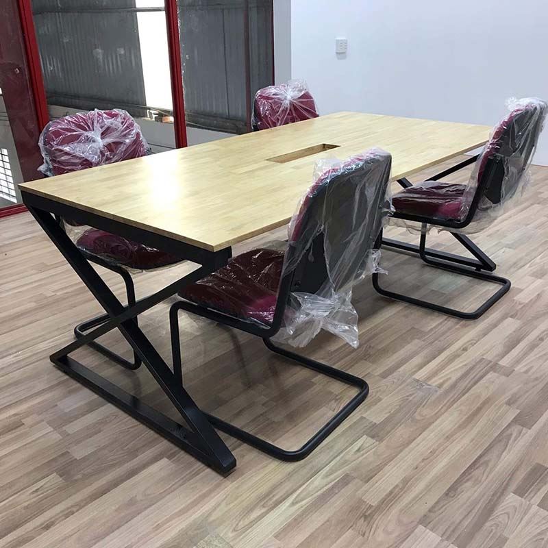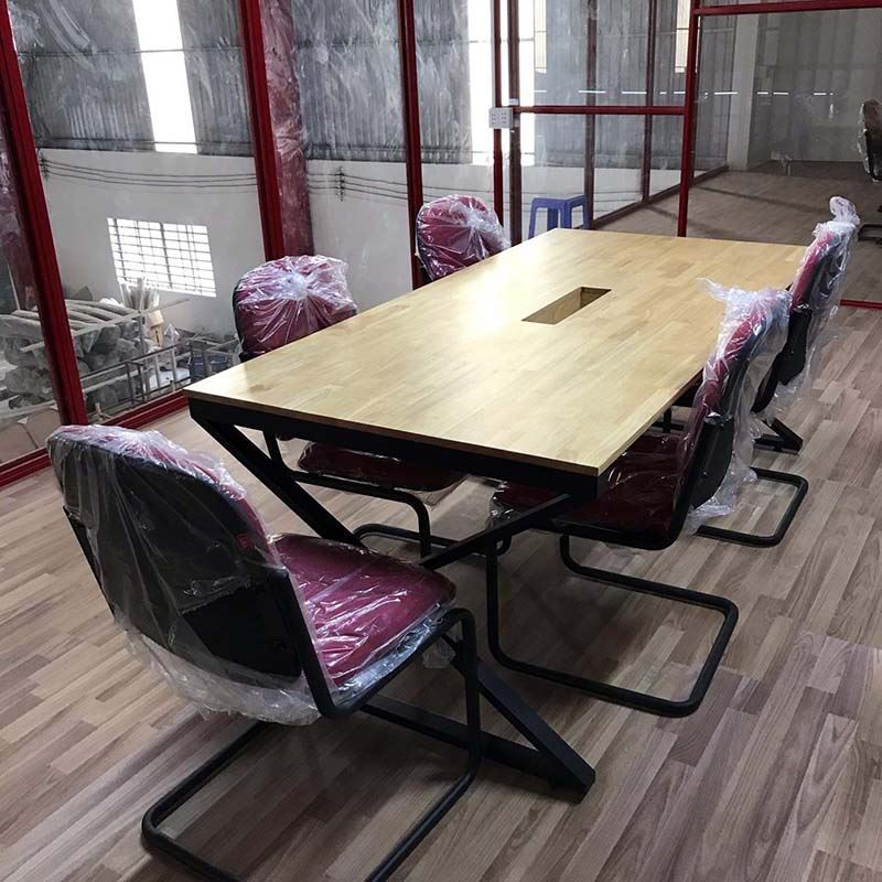Bàn họp HBXC011 XConcetp chân sắt chữ nhật 25x50. Bàn văn phòng gỗ cao su ghép tiêu chuẩn AA dày 17mm PU màu gỗ tự nhiên luôn có một vẻ đẹp riêng, thân thiện với môi trường, đối với các văn phòng mở, văn phòng kết hợp với cây xanh thì việc sử dụng bàn gỗ cao su chân sắt kết hợp trở nên hoàn hảo. Chất liệu gỗ cao su tại HomeOffice là gỗ ghép dày 17mm tiêu chuẩn AA ( 2 mặt đẹp) được xử lý qua 4 công đoạn trước khi PU hoàn thiện cho bề mặt sản phẩm rất đẹp mắt, chống nước tuyệt đối. Khung chân sắt sơn tĩnh điện với cơ cấu ngàm lắp ráp dễ dàng.
