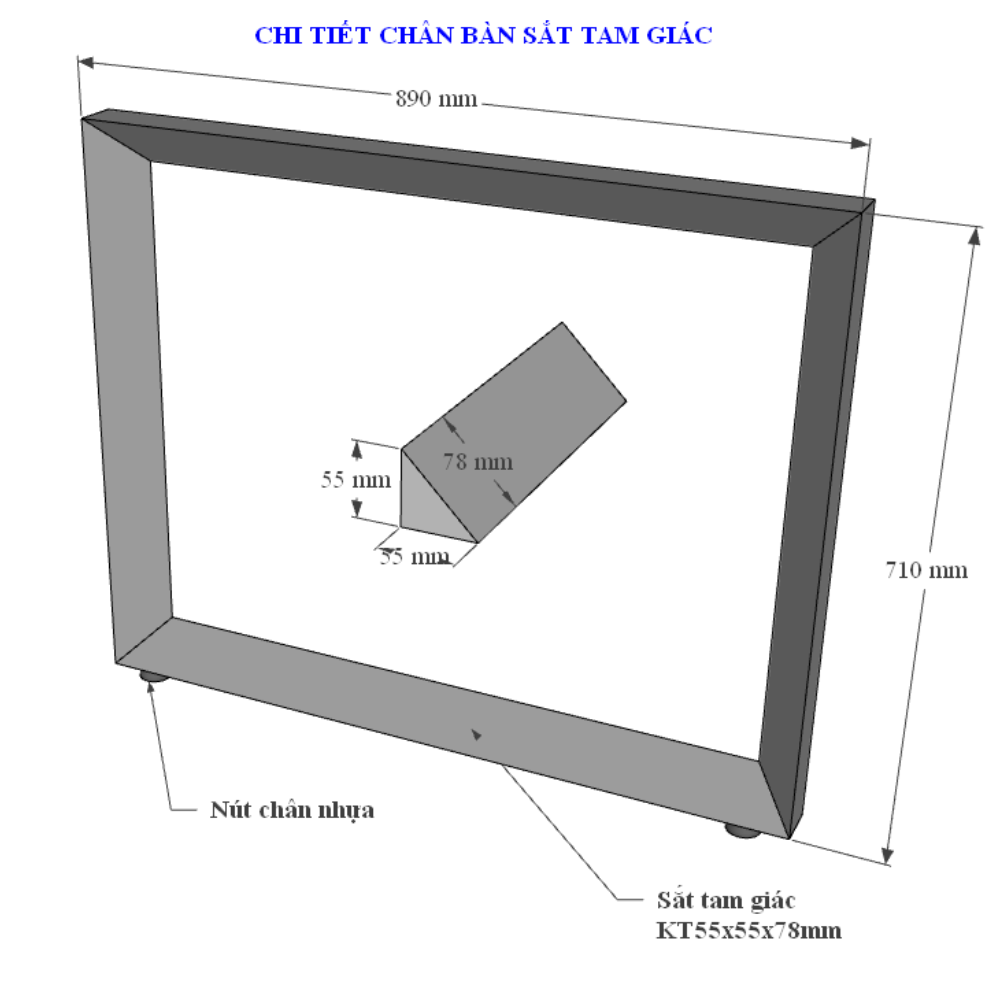 Chân bàn có giăng bàn sắt 25x50mm lắp ráp đỡ mặt bàn chắc chắn